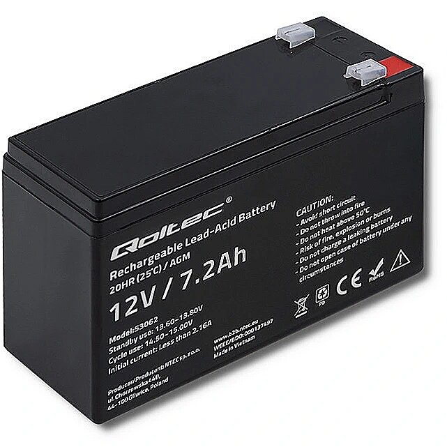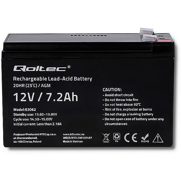 Qoltec AGM battery 12V 7.2Ah, max. 108A