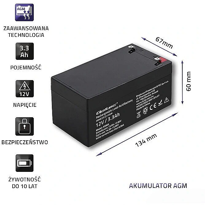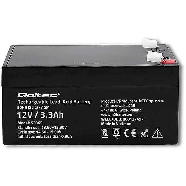 This product Qoltec 53065 AGM battery 12V 3.3Ah
