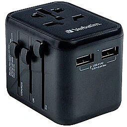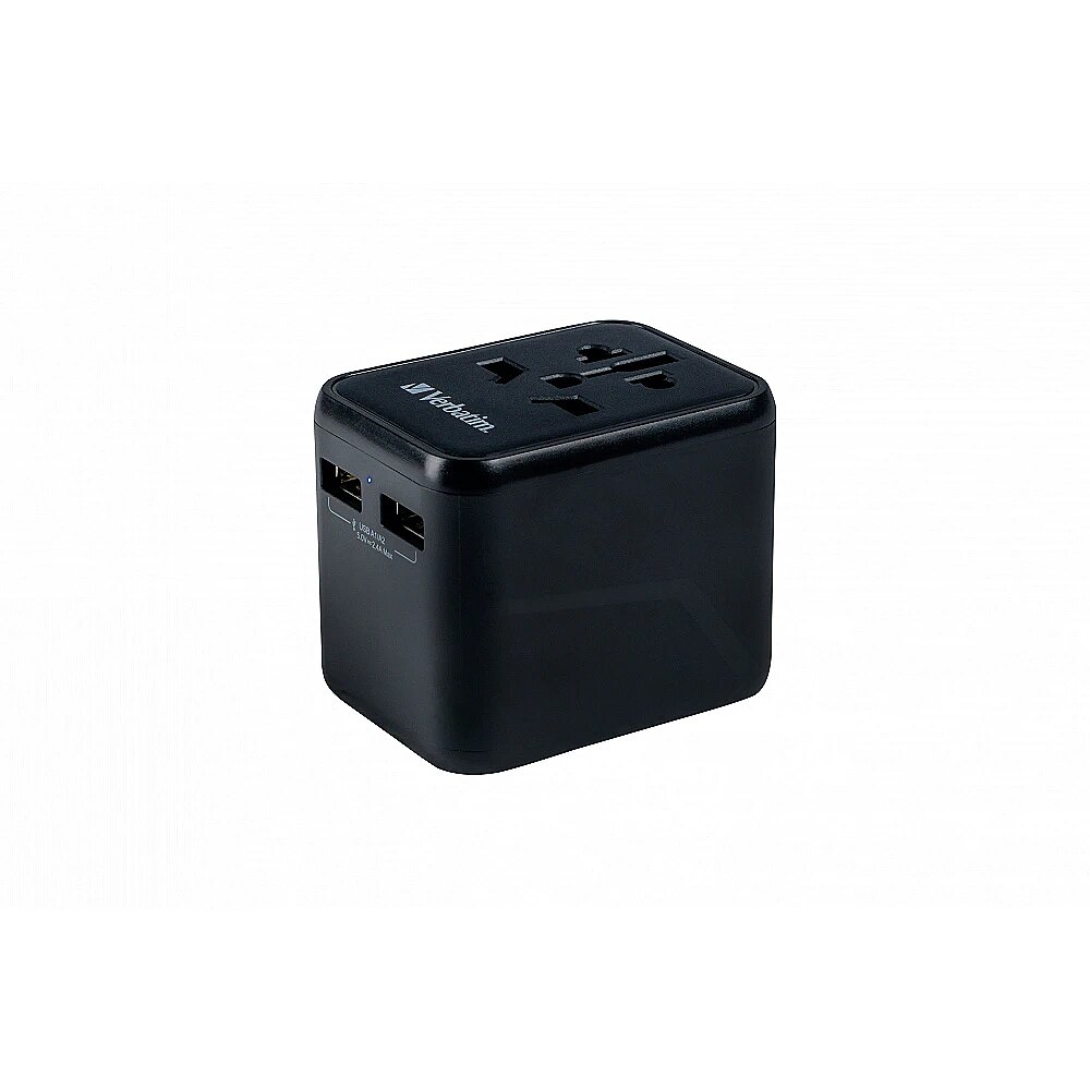 LongDesc - The Verbatim Universal Travel Adapter can be used in more than 180 countries – take it everywhere with you and never be out of power. This world-to-world multi plug will allow you to connect to any local power supply around the world and recharge your power-hungry devices, like laptops and camera batteries. The two USB-A ports on the bottom can charge all your USB devices including smartphones, Bluetooth speakers, tablets, power banks, and Kindles.Charge three devices simultaneouslyThe compact and powerful Universal Travel Adapter allows simultaneous use of the AC power socket and the dual USB ports. The input voltage of the multi adapter plug is 100-250V, meaning that it can be used worldwide to charge multiple devices.Just push the sliders on the side of the multi plug to reveal the three most common international plugs - EU, UK, and US - and rotate the pins for sockets in Australia or China.Certified by FCC, UKCA, CE and ROHS, and made with high quality fireproof polycarbonate material, this Universal Adapter is perfect for daily use during your trip.It has safety shutters for child protection that can only be opened with force of more than 75N (7.5Kg) per hole, and its BS1362 compliant fuse (including a spare) gives you 100% peace of mind wherever you may go.