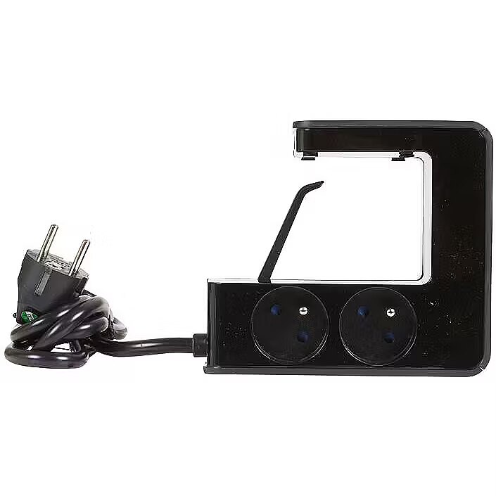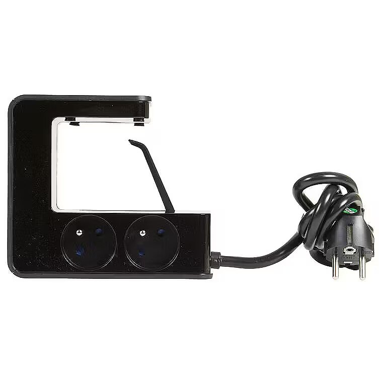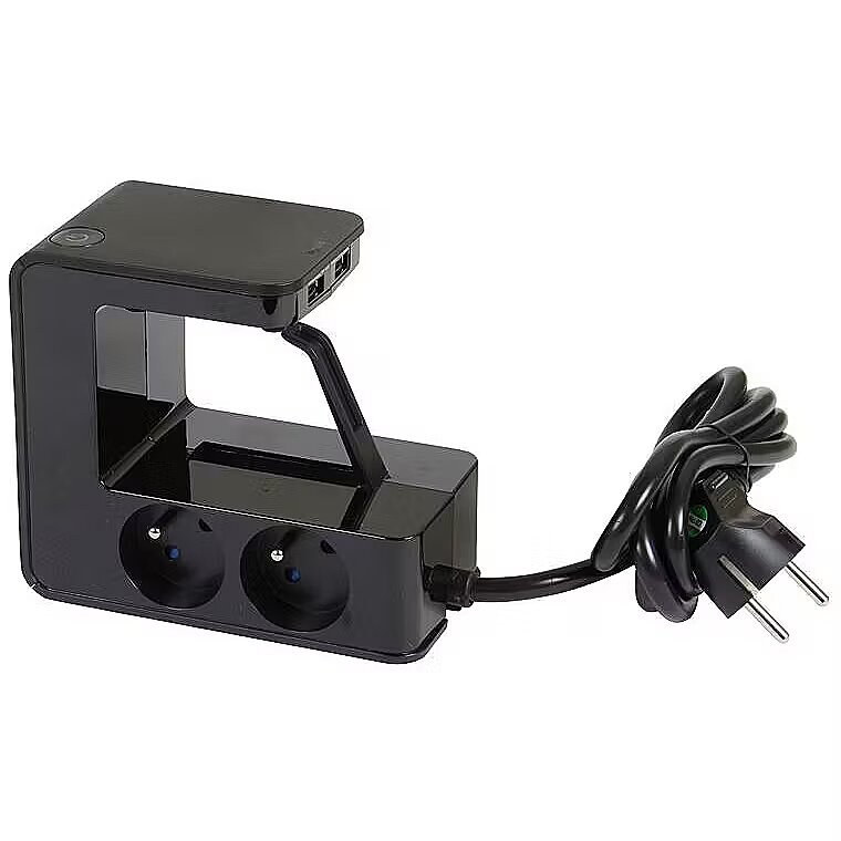 Description - Zatrzaskowy przedłużacz listwy zasilającej z 4 gniazdami 2P + E, 2 portami USB typu A i podświetlanym przełącznikiem - czarny Cechy Przedłużenie listwy zasilającej, które można łatwo zamocować na stole lub biurku, umożliwia schowanie gniazdek pod biurkiem, pozostawiając dostęp do modułów ładujących USB 4 x 2P + E 16 A / 230 V - 3680 W. Przewód zasilający obracany o 90 ° (3G, 1,5 mm)