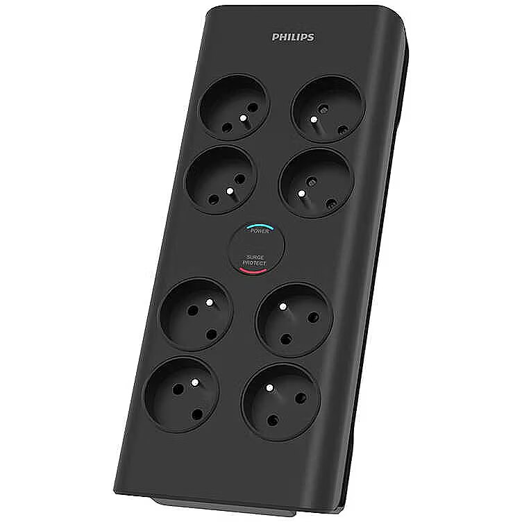 ShortSummaryDescription - Philips SPN7080BA/60, 900 J, 8 AC outlet(s), 3680 W, 16 A, Black, 2 m
