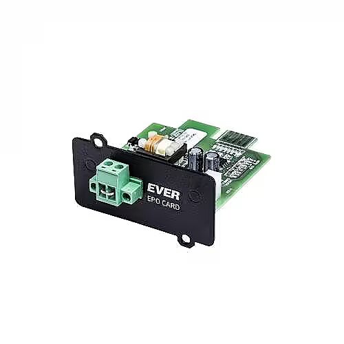 Description - Karta EPO przeznaczona jest do zasilaczy UPS z serii SINLINE RT XL. Dzięki zastosowaniu karty użytkownik ma możliwości zdalnego, awaryjnego przerwania dostarczania energii do urządzeń odbiorczych z wyjścia zasilacza w ekstremalnych sytuacjach, jak np. pożar. Po zamontowaniu karty w specjalnym gnieździe znajdującym się na tylnym panelu zasilacza UPS, karta wykrywana jest automatycznie. Karta wykonana jest w konfiguracji NC (normalnie zamknięty).