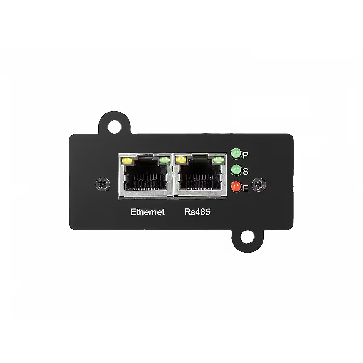 Description - Karta SNMP do UPS - rozszerzenie dla zasilaczy awaryjnych Armac Karta sieciowa SNMP to akcesorium komunikacyjne, które rozszerza możliwości kompatybilnych zasilaczy UPS marki Armac-Energy o pełne zarządzanie i monitorowanie w czasie rzeczywistym z dowolnego miejsca, poprzez przeglądarkę internetową oraz menedżera SNMP. Dzięki zintegrowanemu dostępowi sieciowemu użytkownik może planować wyłączenie, uruchomienie czy restart UPS-a, przeglądać podstawowy stan baterii i kluczowe parametry - wszystko bez instalowania dodatkowego softu. Rozwiązanie obsługuje logi zdarzeń, harmonogramy self-testów, powiadomienia e-mail, pułapki SNMP oraz ustawianie własnych limitów poszczególnych alarmów, zapewniając centralną kontrolę nad całym systemem zasilania awaryjnego. Modbus 485 Poll/Slave & Modbus TCP/IP: łączność klasy przemysłowej Modbus RTU (485): karta może pracować jako Poll (master), gdzie w tym trybie pozwala odpytywać do 8 zewnętrznych czujników/urządzeń, lub jako Slave, udostępniając parametry UPS np. sterownikom PLC. Tryby są przełączalne i wzajemnie się wykluczają. Elastyczna konfiguracja: użytkownik niezależnie od trybu definiuje przepustowość, parzystość, numer adresu urządzenia, funkcji, a w trybie Poll wskazuje dokładny rejestr z których karta ma pobrać dane. Protokół Modbus TCP/IP: kapsułuje ramki RTU w pakietach Ethernet (port 502, który można zmienić), umożliwiając zdalny dostęp do parametrów UPS za pomocą tego protokołu tam gdzie fizyczne połączenie nie jest bezpośrednio możliwe. Dzięki tej implementacji nie trzeba prowadzić kabla zapewniając połączenie urządzeniom końcowym wykorzystującym Modbus TCP/IP lub również tym, które wymagają fizycznego portu przy wykorzystaniu konwertera TCP/IP na RTU. SNMPv1 / SNMPv2c / SNMPv3 basic: sieciowe zarządzanie wieloma UPS-ami