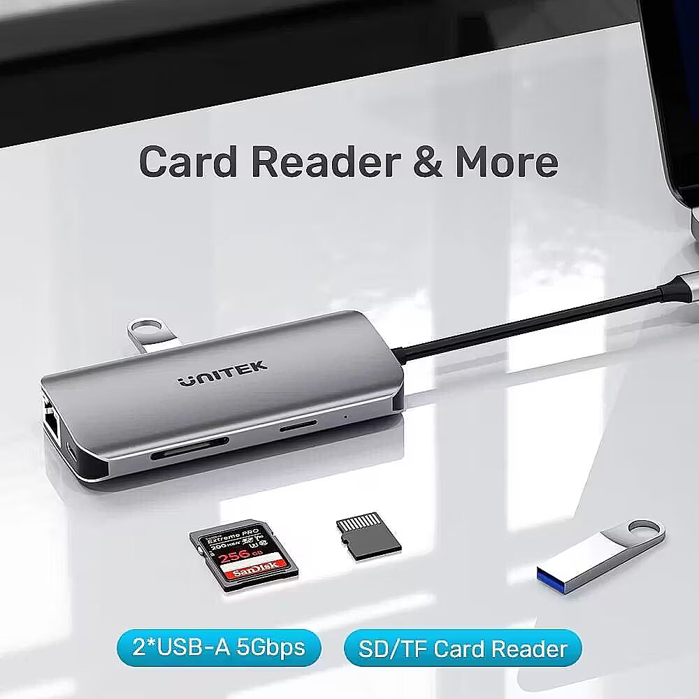 Unitek ACTIVE HUB USB-C 2X HDMI,SD,4K,RJ45,PD 100W