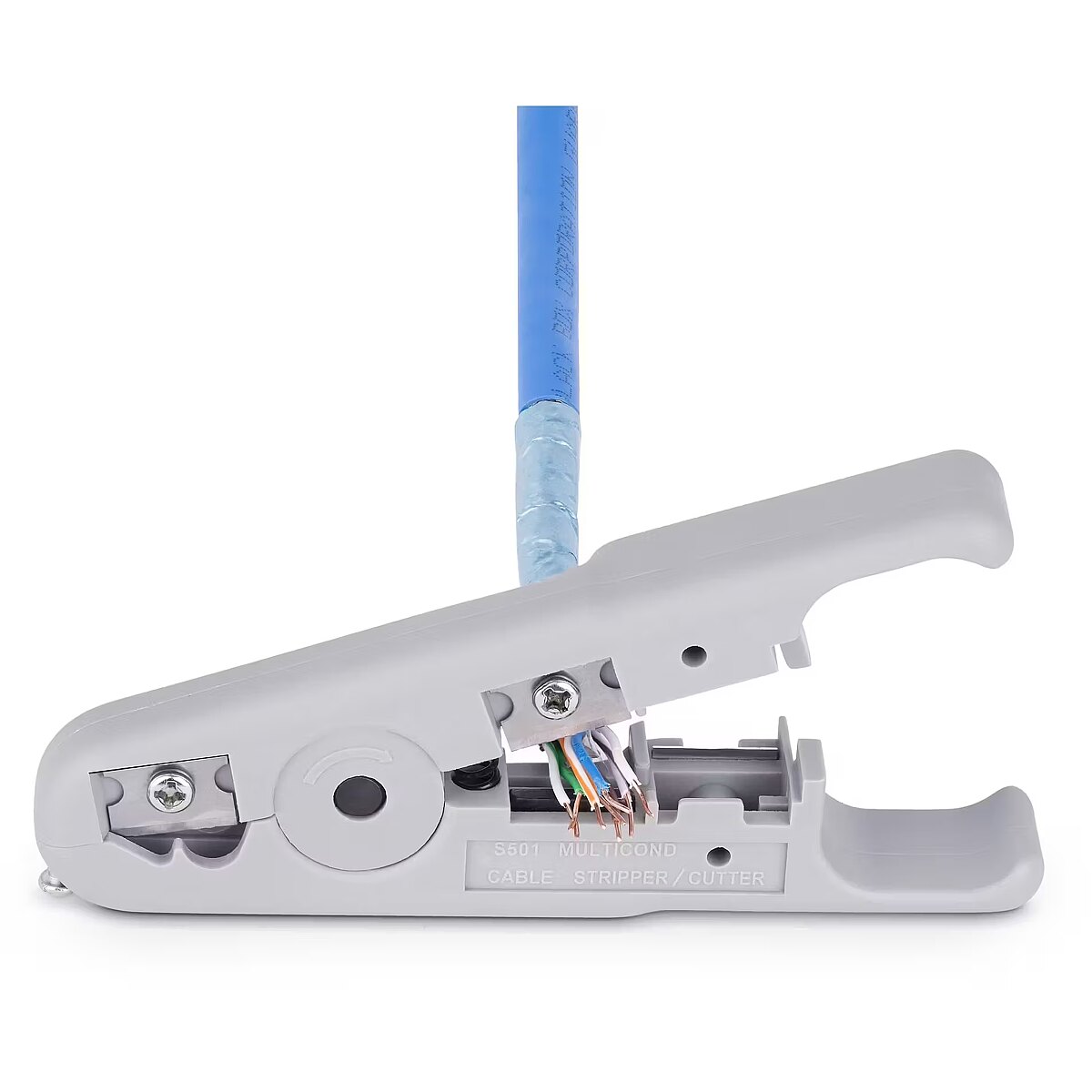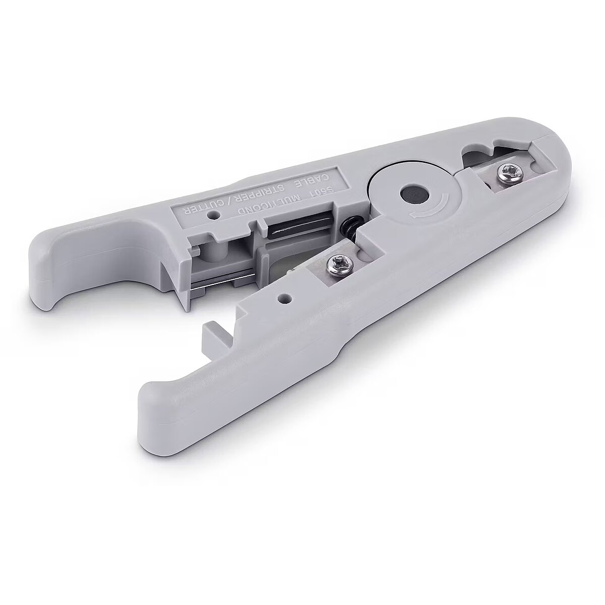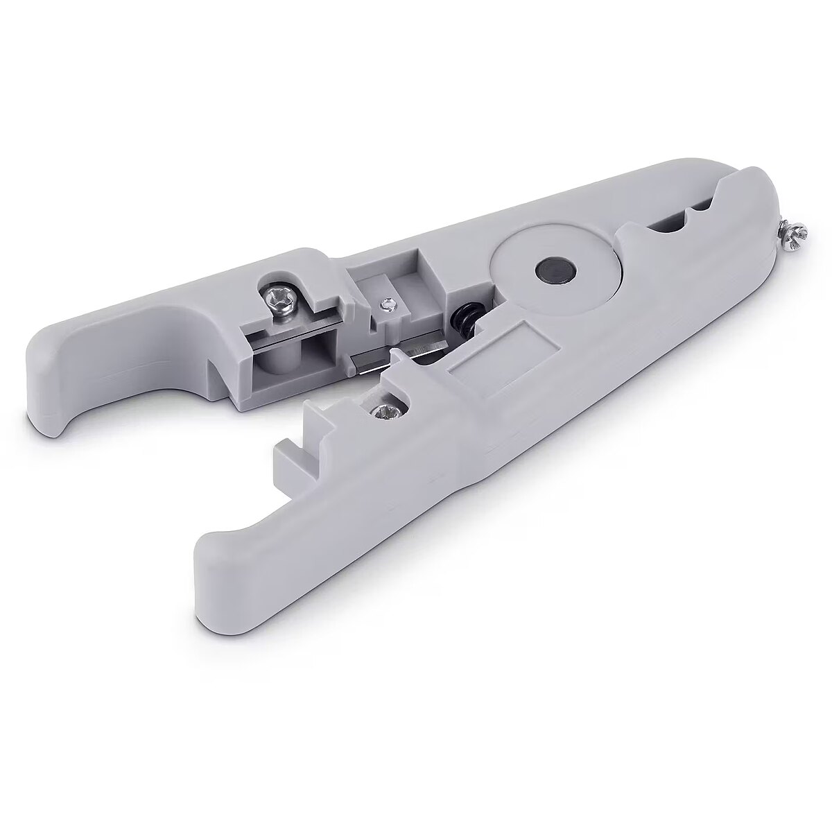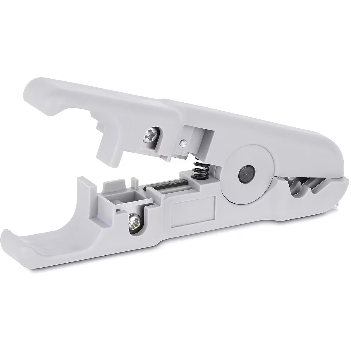 LongDesc - Cleanly cut and strip round or flat cables using this compact cable cutting toolThis portable Rotary Cable Stripper quickly and easily removes insulation from a variety of cables, making it an essential tool for network, coaxial, and multi-conductor cable preparation.Easy-To-UseThis cable stripping tool features an easy-to-use design that enables effortless removal of cable jackets and insulation. With its 360-degree rotation, it ensures precise control, reducing hand strain during repetitive tasks. The tool fits cables with an outer diameter ranging from 3.5mm (0.13in) to 7.5mm (0.29in), making it ideal for various types of cables including UTP, FTP, STP, coaxial, and multi-conductor cables.Versatile Compatibility for Various CablesDesigned for use with a diverse range of cable types, this Network Cable Stripper features specific slots for both round and flat cables. It helps streamline your workflow by efficiently preparing coaxial, network, and audio cables for installation, making it an ideal tool for any professional or DIY project.Adjustable Depth & Integrated CutterThis Cable Stripping and Cutting Tool allows you to adjust the clamping depth using a Phillips head screw to accommodate different cable thicknesses. This ensures precise insulation removal without damaging internal conductors. The built-in cutting slot enables you to neatly trim cable lengths, eliminating the need for additional cutting tools.The StarTech.com Advantage