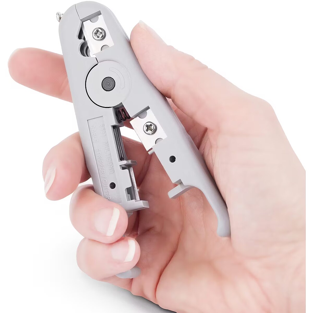ShortSummaryDescription - StarTech.com Network Cable Stripper and Cutter, Professional Wire Stripper for UTP/FTP/STP/Coax Cables, Rotary Wire Stripping and Cutting Tool, Hand cable cutter, Grey, Grey, 7.5 mm, 0 - 50 °C, 105 pc(s)
