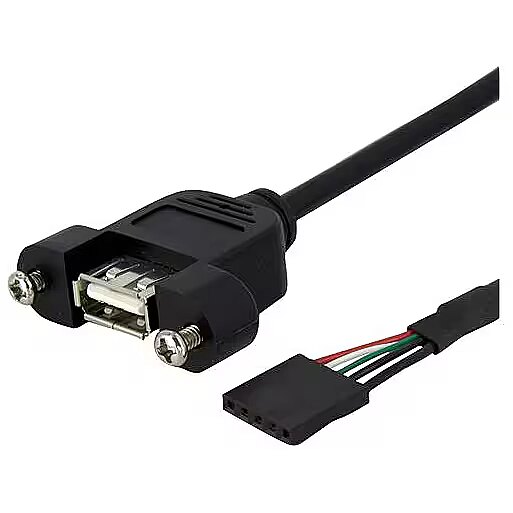 LongDesc - Connect a panel mount USB-A port to your motherboard headerThe USBPNLAFHD3 3ft Panel Mount USB Cable enables you to add a well-secured, easy to access USB 2.0 port to your PC, offering a convenient solution for connecting bootable thumb drives or authentication fobs etc. to the motherboard USB connection.The adapter features one female USB header connector and one female panel mount USB-A port and gives you an extension of 3ft, enabling you to place the cable as needed within the system case.The USBPNLAFHD3 is backed by StarTech.com’s lifetime warranty for guaranteed reliability.The StarTech.com Advantage