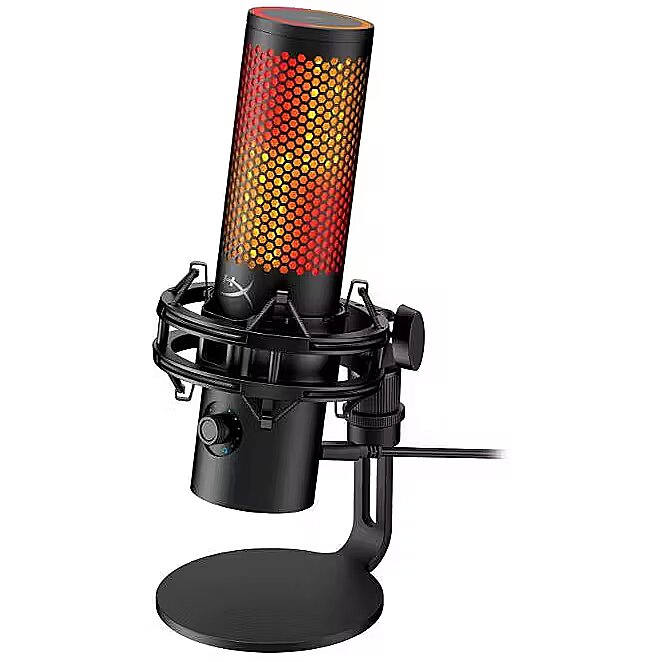 Description - Glow up The HyperX QuadCast 2 S is a full-featured microphone designed for creators, with features such as a tap-to-mute sensor, four polar patterns, and a shock mount/stand. It has improved audio recording resolution and customizable lighting with 100+ aRGB LEDs. The microphone allows for quick adjustments of levels and has a redesigned shock mount for easy mounting. The HyperX NGENUITY software provides further customization options, including an AI-noise reduction feature. HyperX has delivered a microphone that is truly customized for its community.