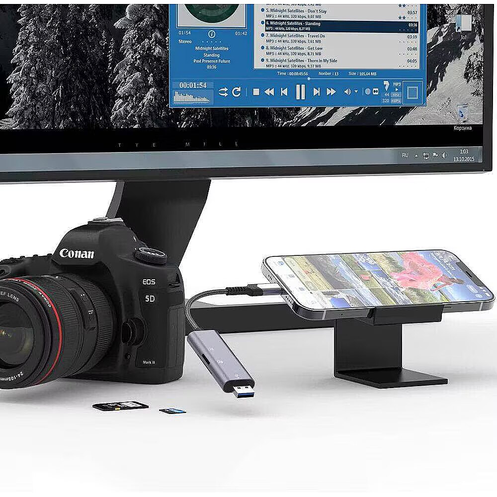 The reader supports the following types of memory cards: microSD, microSDHC, microSDXC, SD, SDHC, SDXC cards. The SD/TF card reader supports memory cards with a maximum capacity of less than 1 TB. It is also possible to read different memory cards simultaneously, which is very convenient and saves time. Reads microSD, microSDHC, microSDXC, SD, SDHC, SDXC cards SD/TF card reading at 3.0 to 5Gbps USB-A / Lightning connector Made of aluminium