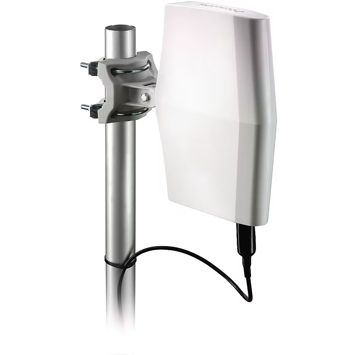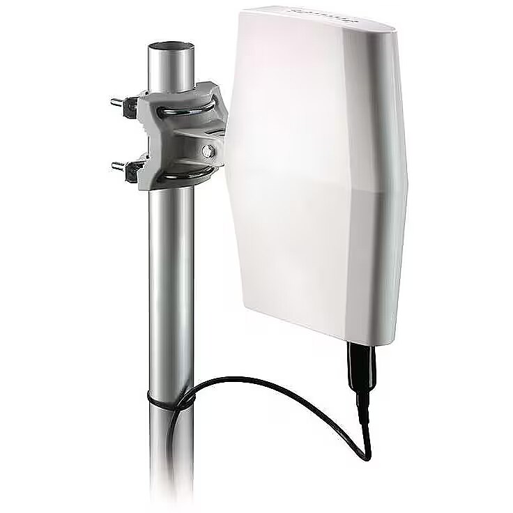 LongDesc - Enhanced digital reception40 dB Amplified antennaThis indoor/outdoor amplified antenna offers excellent digital and analogue reception. Its compact design and various mounting options make it easy to install. Check the set top box owner's manual for powering options.Maintain the quality of your signal- Boost your signal with up to 40 dB amplificationEasily installation anywhere- Extremely compact design for easy installation- Various mounting options for easy installationCustomise the appearance- Weatherproof, paintable surface for customisationProtects against signal loss- Noise reduction filter against signal lossEnvironmentally friendly- PVC/BFR free to respect the environment