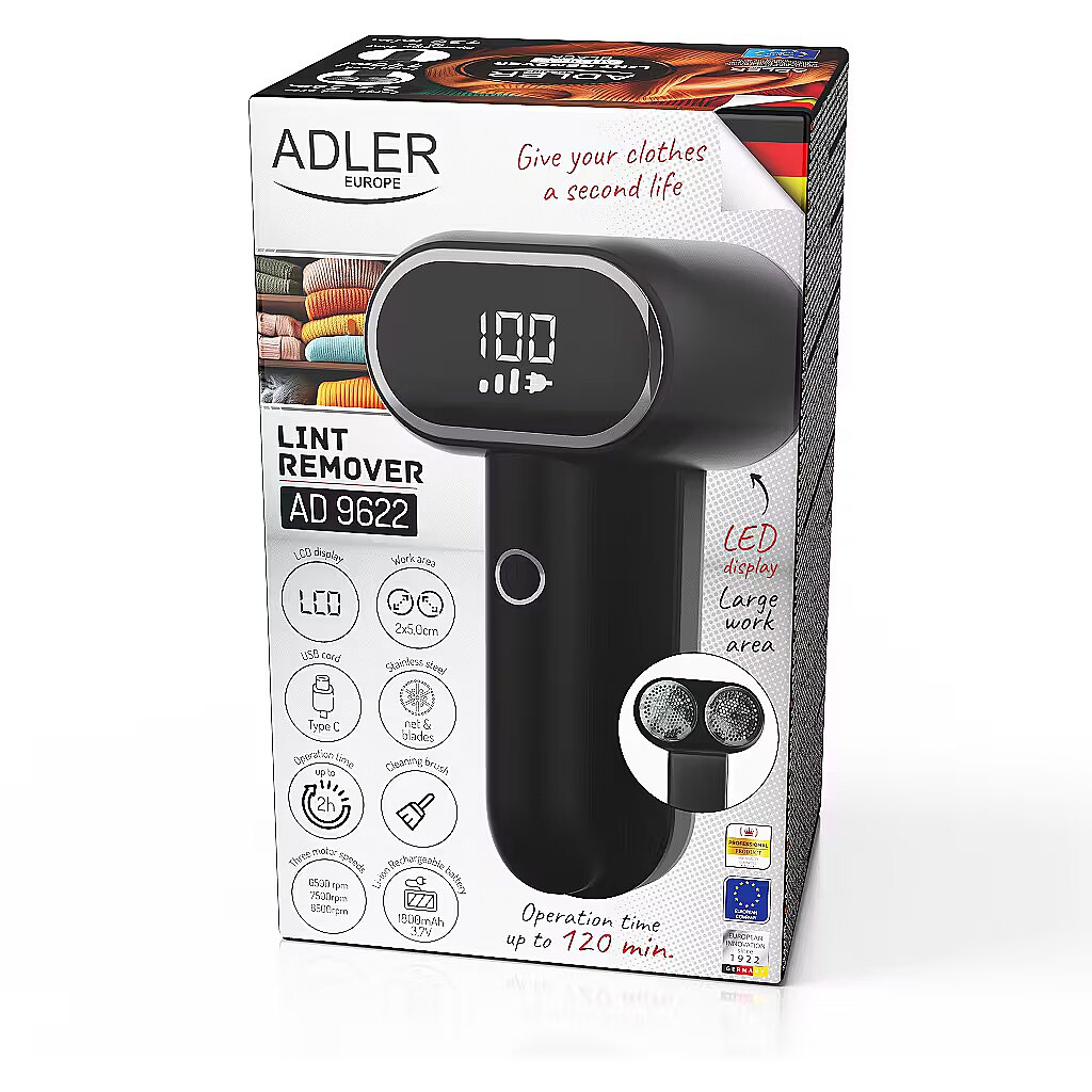 Name - Adler | Lint remover | AD 9622 | Black | Rechargeable battery | 10 W