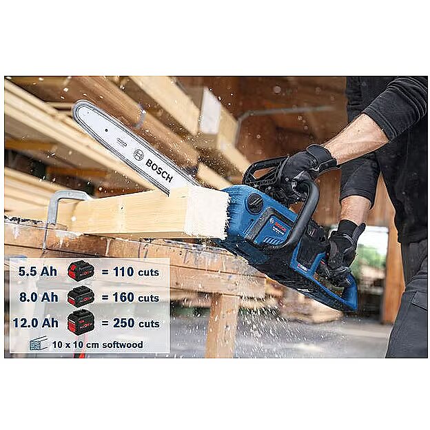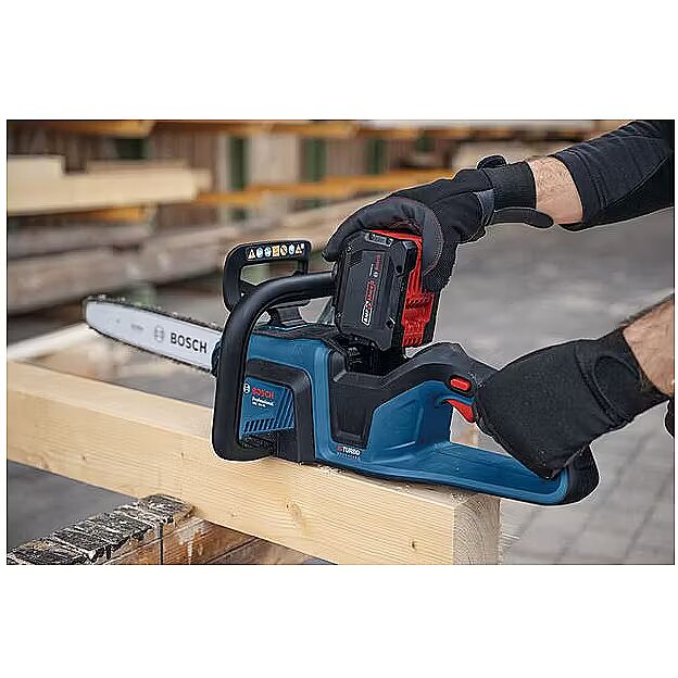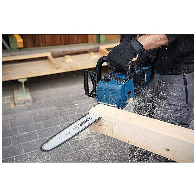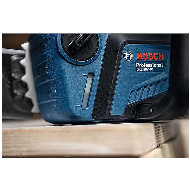 LongDesc - For all your on-site carpentry and outdoor gardening needs, the cordless chainsaw GKE 18V-40 Professional is the perfect solution. Its powerful brushless motor with BITURBO technology delivers strong performance with low noise levels that allow you to work in noise-sensitive areas like residential areas or company sites – all without emitting exhaust fumes. Its electronic motor brake stops the chain quickly after the trigger is released. OptiCut adjusts speed and torque to the respective work situation, avoiding nuisance stalling under higher workloads. The combination of the BITURBO Brushless technology and OptiCut delivers high performance and continuous cutting all in one product.Equipment & ApplicationThe 40 cm bar allows continuous cutting through beams, timber, and thick branches, making it the perfect tool for a wide range of jobs. This is a chainsaw that starts hassle free, has low maintenance, and a long service life. Compatible with the Bosch Professional 18V System and with the multi-brand battery alliance AMPShare.Additional InformationThe scrench is stored directly on the chainsaw and therefore is always ready at hand for easy chain fastening and maintenance. It has a leakage-free, translucent oil tank for easy oil level checks. Metal bumper spikes increase control and precision when cutting.
