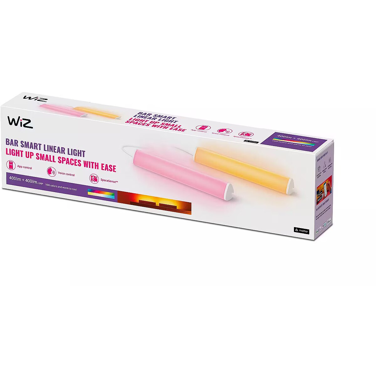 MediumDescription ET - WiZ Bar Linear Light on õhuke ja mitmekülgne valgusriba, mis lisab värvilist aktsentvalgust riiulitele, nurkadesse või seinale. Seda saab kallutada valgusnurga muutmiseks või ühendada kaks riba pikema valgusefekti loomiseks.
