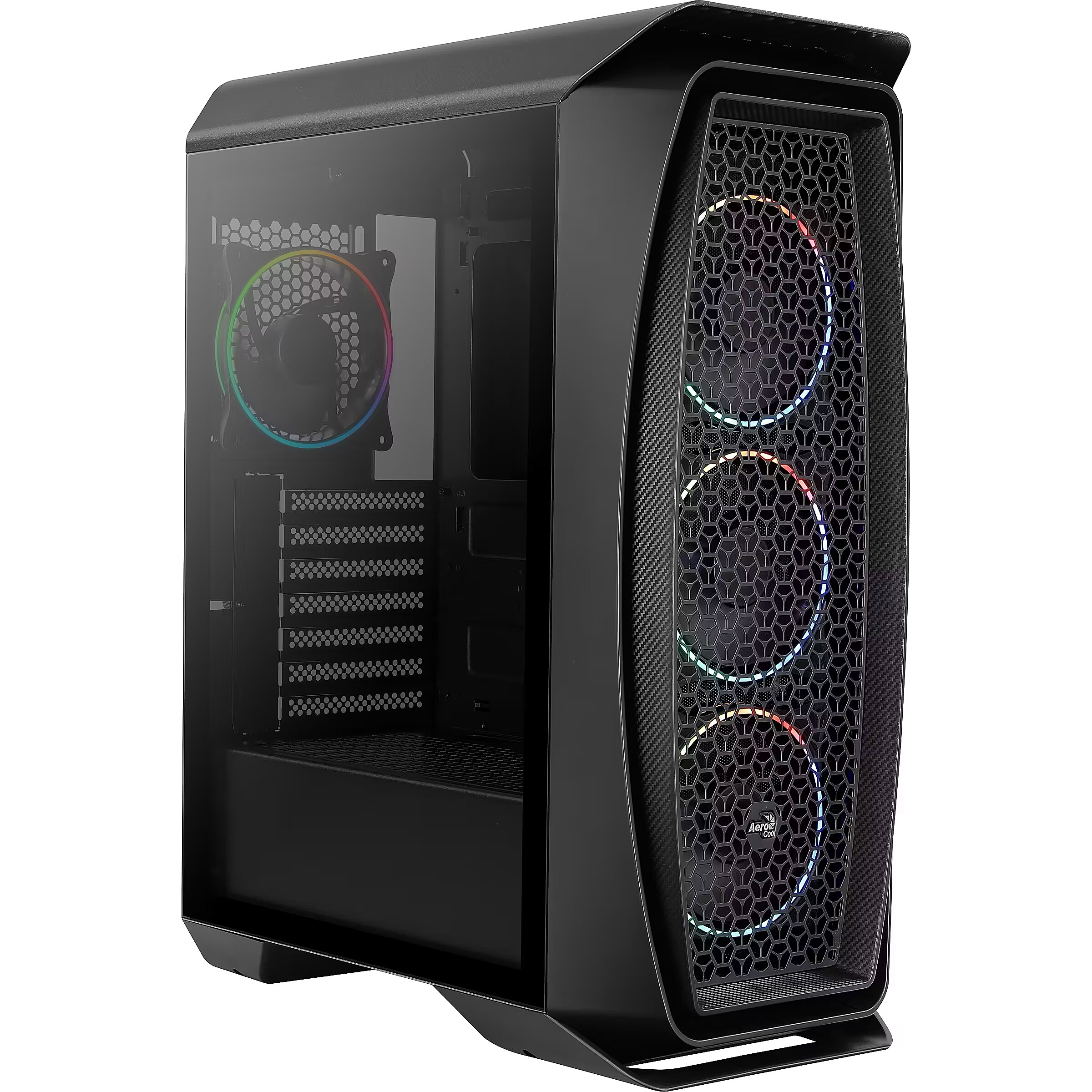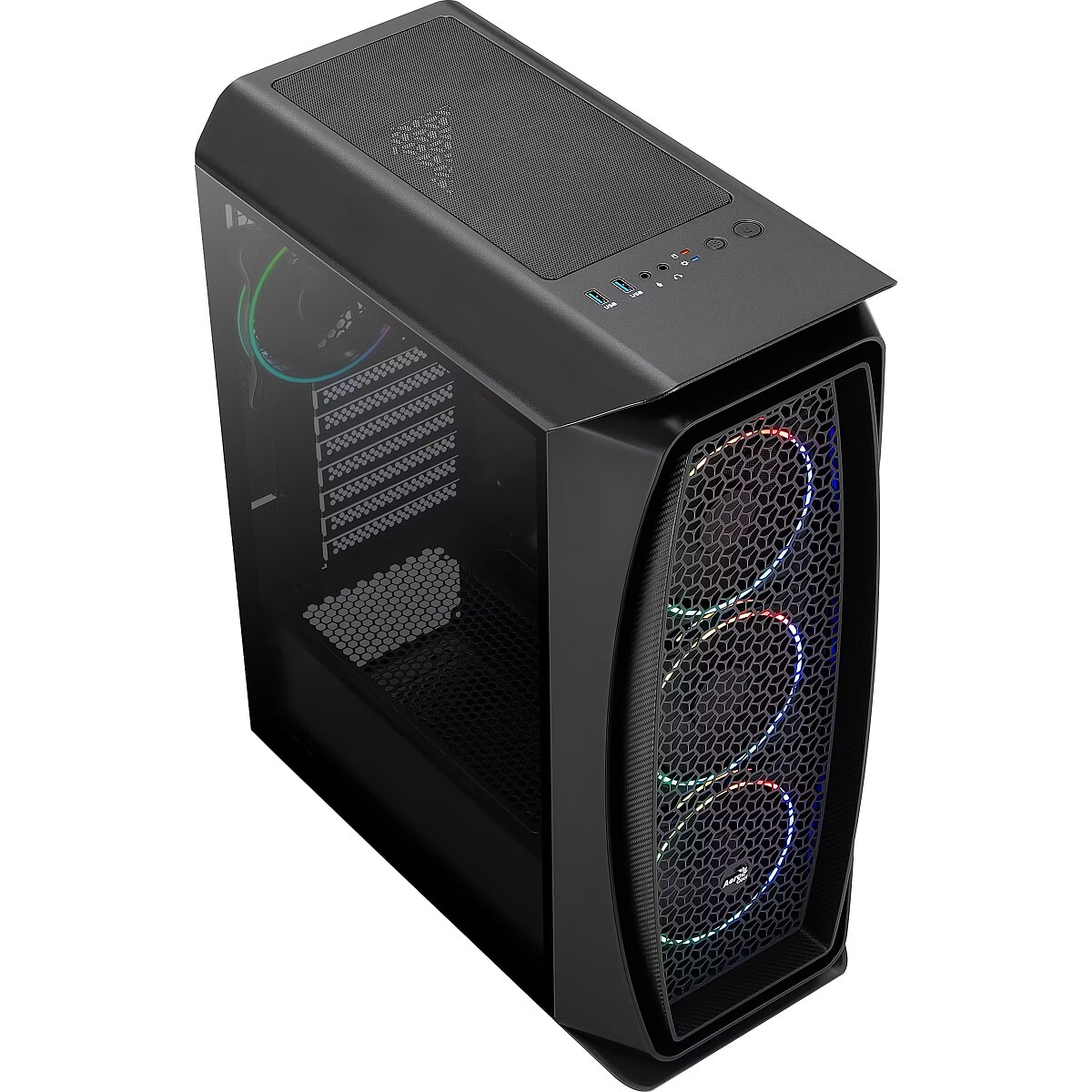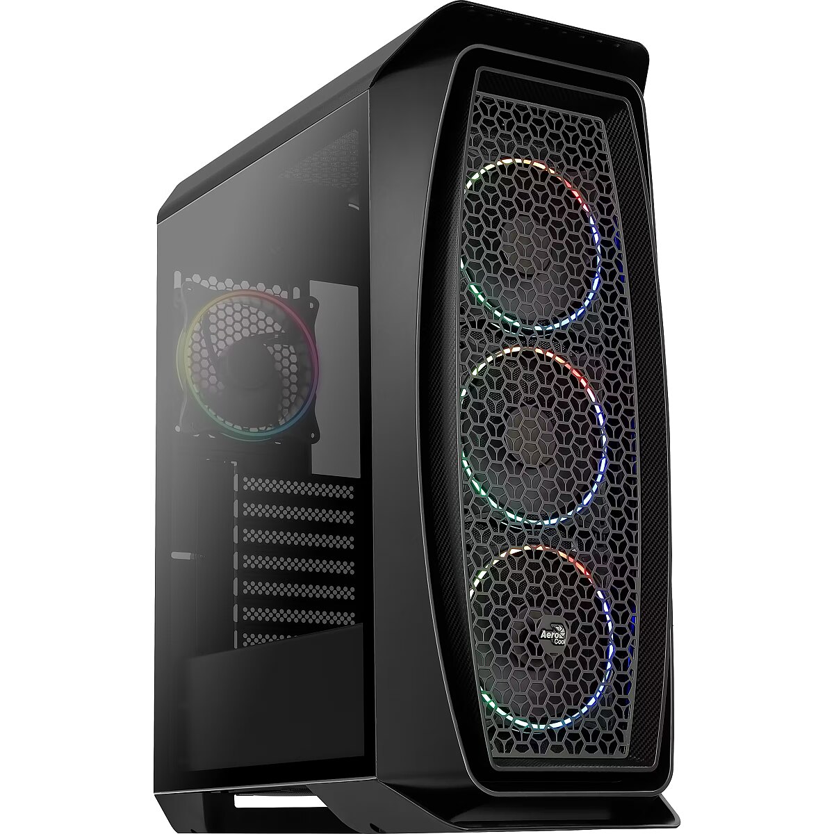 LongDesc - High-performance mid tower case with full tempered glass side panel to showcase the inside of your rig. Mesh front panel design allows for clear viewing of your front LED fans while providing superior air flow and circulation.Comes equipped with three 12cm Addressable RGB fans in the front and one 12cm Addressable RGB fan in the rear of the case. Addressable RGB fans can be controlled using one of two ways: RGB LED control button or Addressable RGB motherboard. 6-Port RGB Control Hub allows you to connect your ARGB fans or accessories.ADDRESSABLE RGB COMPATIBLETake full control of your Addressable RGB fans using one of two ways:- RGB LED control button on top of the case- Addressable RGB motherboardFOUR ADDRESSABLE RGB FANS INCLUDEDComes equipped with three 12cm Addressable RGB fans in the front and one 12cm Addressable RGB fan in the rear of the case.COMES EQUIPPED WITH ECLIPSE 12 FANSEquipped with Dual Slim Ring Lighting Design with LED rings as thin as 2mm, the Eclipse 12 delivers a sleek and stylish flair while delivering superior cooling capabilities.6-PORT RGB CONTROL HUBFeatures a 6-port hub with PWM control functions and allows you to connect up to six 6-Pin AeroCool Addressable RGB fans and up to two 3-Pin Addressable RGB accessories with +5V ARGB connector.Access 16.8 million colors using compatible Addressable RGB motherboard (Asus Aura Sync, MSI Mystic Light Sync, and Gigabyte RGB Fusion).PWM COMPATIBILITYPlease check if the 4-Pin fan header on your motherboard is PWM compatible.- PWM based – PWM compatible- Voltage based – not PWM compatibleADDRESSABLE RGB RECEPTOR CABLE INCLUDEDComes with a receptor cable to connect your hub with compatible Addressable RGB motherboards.- ARGB MB Connector (For all other ARGB MBs such as ASUS, MSI, etc.)- ARGB MB Connector (Gigabyte RGB Fusion)- 4-Pin Hub Connector- PWM 4-Pin ConnectorPOWER CABLE INCLUDEDComes with a cable to power the hub.- SATA Power Connector- 4-Pin Hub Power ConnectorMESH FRONT PANEL DESIGNFeaturing a unique and stylish mesh front panel design, this case allows for clear viewing of your front LED fans while providing superior air flow and circulation.FULL TEMPERED GLASS SIDE PANELComes equipped with a full tempered glass side panel to properly showcase the inside of your rig.DUAL CHAMBER DESIGNBuilt with a dual chamber design to direct heat away from the main chamber for more effective all-around cooling.COOLING FOR YOUR GRAPHICS CARDVGA fan bracket design supports graphics card cooling: 2 x 120mm fans for superior VGA cooling.AIR COOLINGSupports air cooling in the front, top, and rear of the case to enhance cooling performance.- Front: 120mm x 3 or 140mm x 2 (Includes 120mm Eclipse Fan x 3)- Top: 120mm x 2 (Optional)- Rear: 120mm x 1 (Includes 120mm Eclipse Fan x 1)- Supports VGA Fan: 120mm x 2 (Optional)LIQUID COOLINGSupports liquid cooling in the front, top, and rear of the case for maximum efficiency cooling.- Front: 120/240/280/360mm Radiator (Optional)- Top: 120/240mm Radiator (Optional)- Rear: 120mm Radiator (Optional)BUILT FOR HIGH PERFORMANCE- Supports ATX, Micro-ATX, and Mini-ITX motherboards- Supports CPU coolers up to 161mm- Supports high-end graphics cards up to 327mmCONVENIENT ACCESS TO YOUR MEDIAQuick and easy access to LED control button, 2 x USB 3.0, HD audio and mic ports, and power button.STORAGE CAPABILITYSupports up to 2 x 3.5” HDDs (1 x 3.5” and 1 x 2.5”/3.5”) and 3 x 2.5” SSDs (2 x 2.5” and 1 x 2.5”/3.5”).EASY MAINTENANCERemovable dust filters on the front, top, and bottom of the case for fast and convenient cleaning.