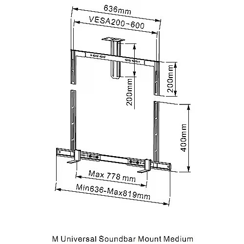 LongDesc - When you turn your TV from side to side you want your soundbar to move with the TV screen.M Universal Soundbar Mount is made especially for turnable flat screen TV.The soundbar always faces you so the picture and sound and picture never loses sync.To keep your soundbar flush with your flat screen TV, the height and depth of the Sound Bar Mount can be adjusted to fit different sizes and shapes of soundbars.The metal finish adds a stylish accent to the sound bar bracket and it can be used with virtually any TV wall mount.M Universal Soundbar Mount and Camera Holder Medium holds a maximum weight of 10kg and provides secure support for your sound bar for TV´s up to 70". The flexible design can be used with any wall mount that accommodates VESA® mounting patterns up to 600 x 400mm. The mount also gives you the function to connect a web camera or other camera device like Xbox or Playstation camera.