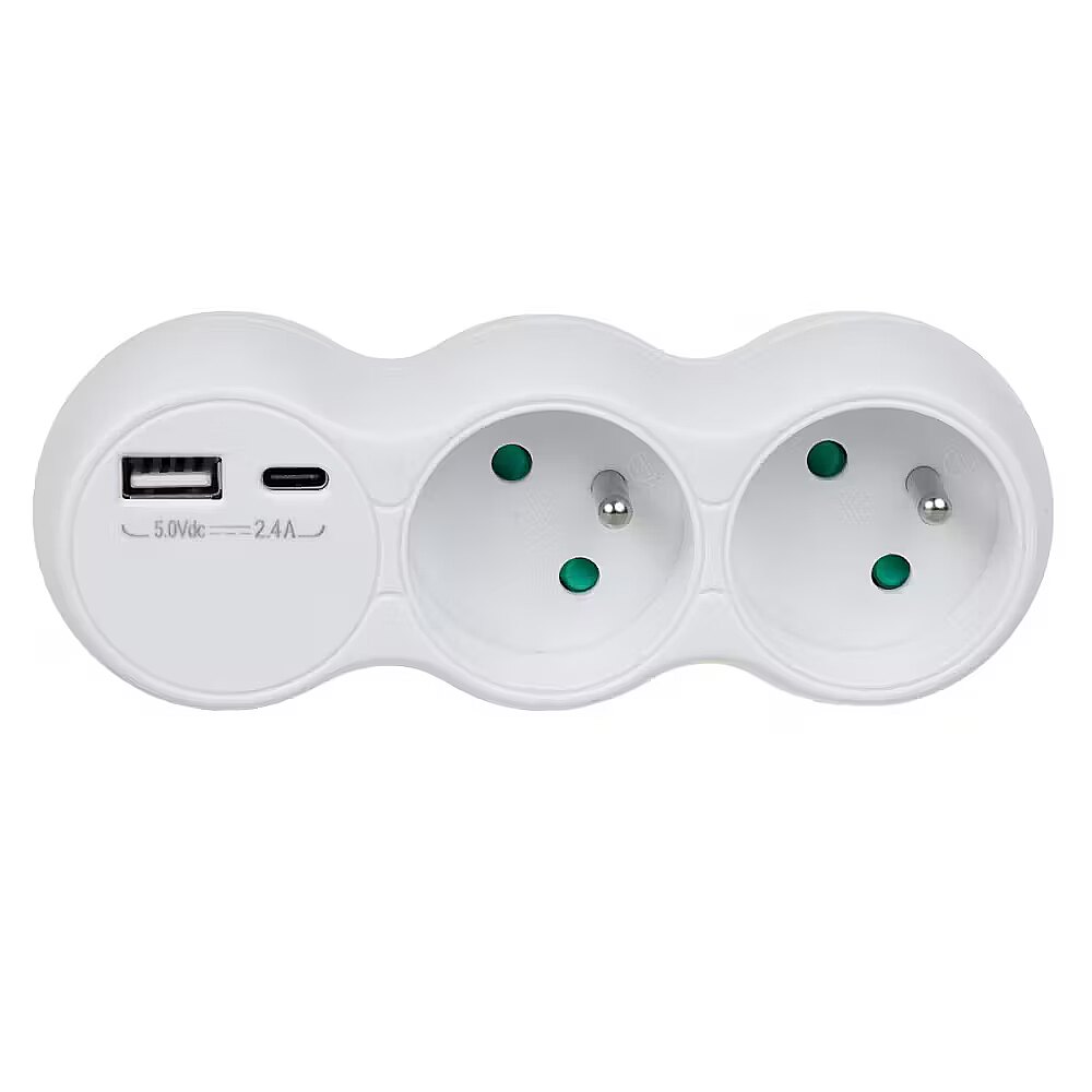 Other features - Manufacturer: Maclean Model: MCE339 E Material: plastic Housing color: white Number of sockets: 2 Type of sockets: E Maximum load: 3680W Rated current: 16A IP rating: IP20 Shock protection class: I USB output A and C: 5V DC, 2.4A