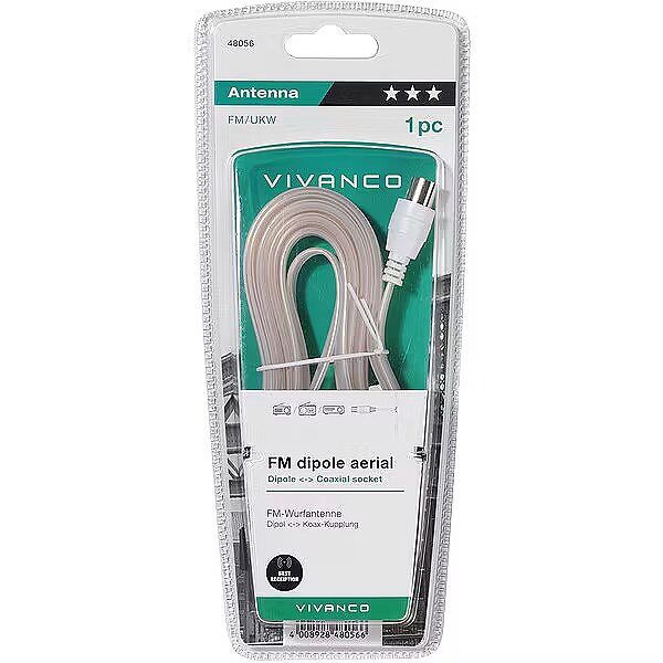 description_short_et - FM dipool toaantenn Koaksiaal pistikuga Takistus: 75 Ω