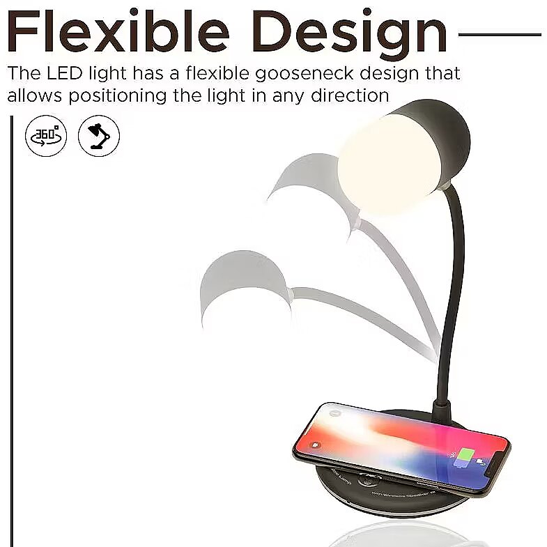 title_lv - PROMATE LumiQi LED Galda Lampa ar Bezvadu uzlādi un Bluetooth skaļruni