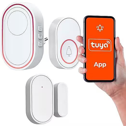 Description - Tuya Wi-Fi alarm + wireless doorbell + door/window opening sensor The system connects wirelessly. The control panel connects to Internet via Wi-Fi. The sensor alerts if there is open window or door, or doorbell pressed in the Tuya / Smart Home mobile application. Power supply: 110/220V AC, battery backup: 3.7V, 300mAh Current consumption: Model - 13165