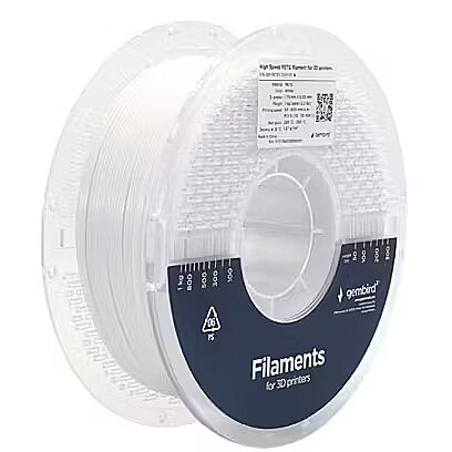 Description - PETG High Speed Filament, 1.75 mm, 1 kg, white Polyethylene terephthalate (PETG) is an amorphous thermoplastic from the polyester family. An ideal combination of clarity and strength. PETGs transparency is close to acrylic, while its impact resistance is similar to polycarbonate. Easy printing on various 3D printers. High-speed filament for fast printers such as Bambu Lab, Creality K1 (Max), FF 5M (PRO), and Voron. Perfectly compatible with the Bambu Lab Automatic Material System (AMS). Suitable for CoreXY machines. Printing at maximum speed in Sport and Ludicrous modes. Enhanced melt flow capability, enabling higher-speed printing. Very high-strength filament. Impact resistance PETG is less brittle than acrylic and is a more affordable alternative to polycarbonate. Chemical resistance offers excellent chemical resistance compared to many other transparent plastics. Environmentally friendly, as it is considered 100% recyclable. Very low shrinkage makes printing large, flat surfaces extremely easy. Easy printing on any acrylic, glass, Kapton, or other print bed platform.