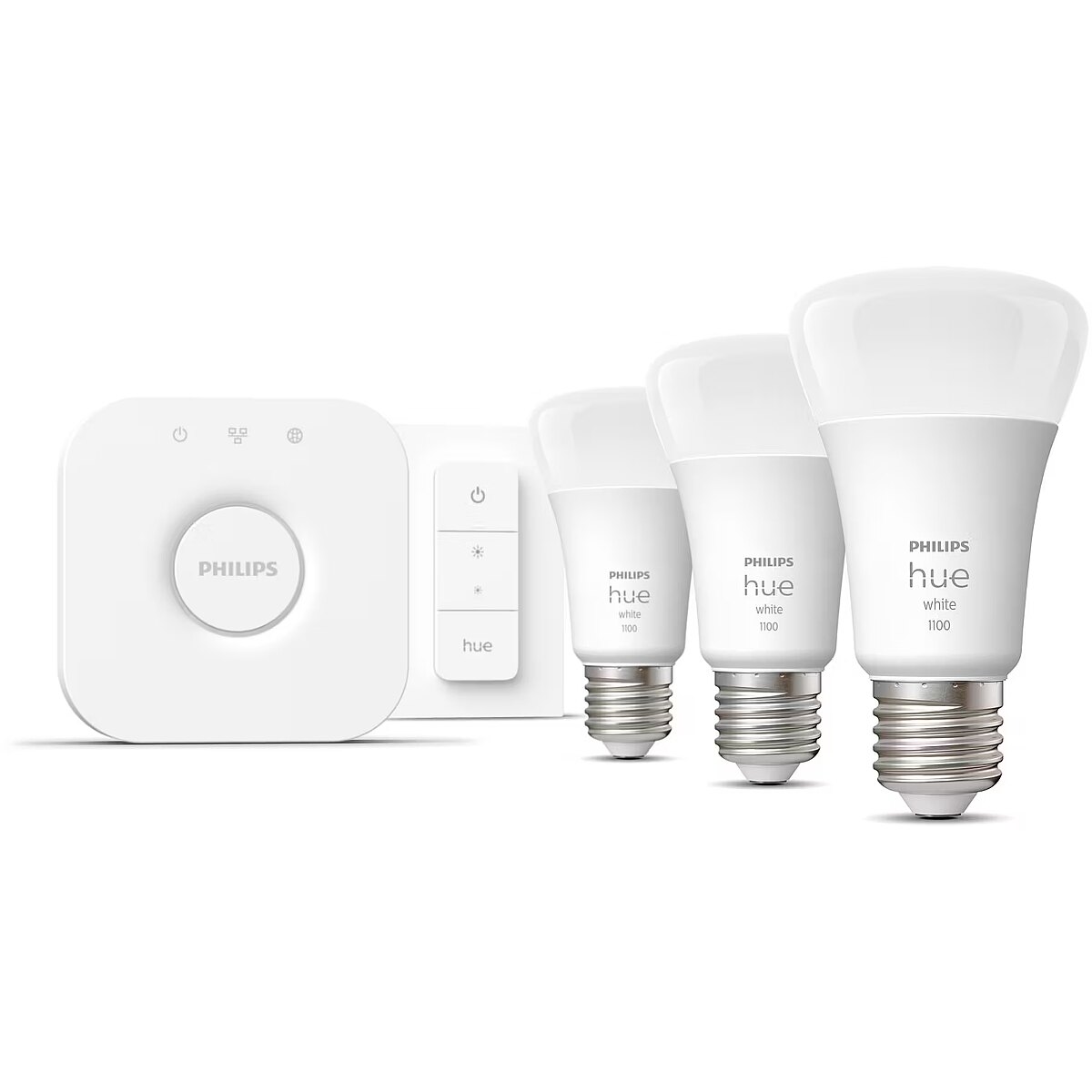 Title - Philips Hue White Starter kit: 3 E27 smart bulbs (1100) + dimmer switch