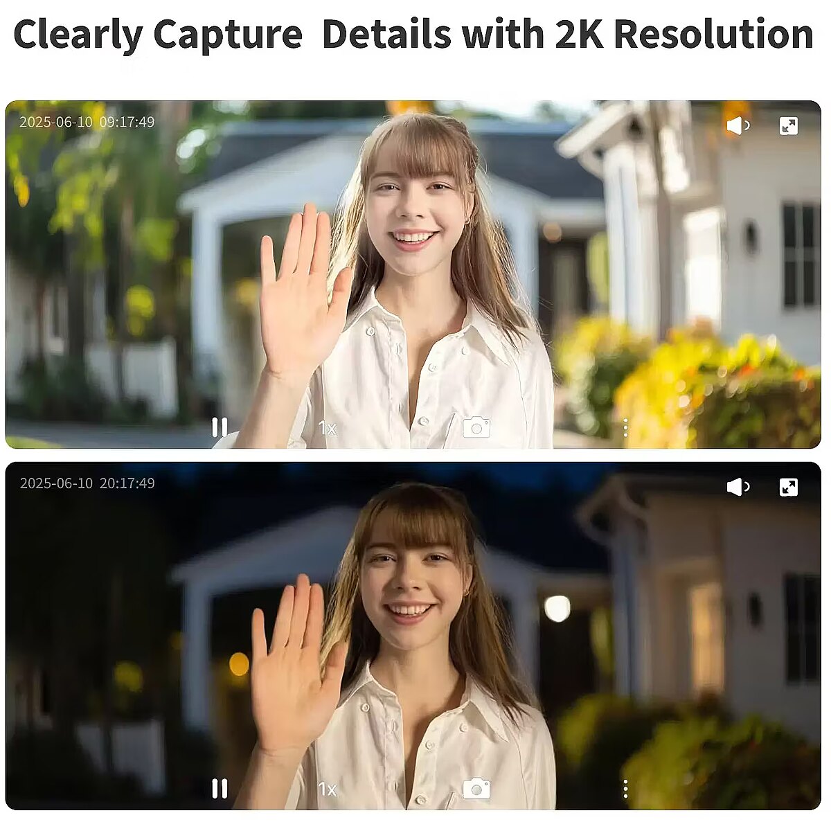 Capture every detail with stunning 2K video resolution. The camera's wide 175° field of view and 4:3 aspect ratio are designed to show you everything on your porch, from a visitor's face to packages on the ground. The large f/1.8 aperture ensures excellent image quality, even in low-light conditions. Flexible Power & Secure Storage