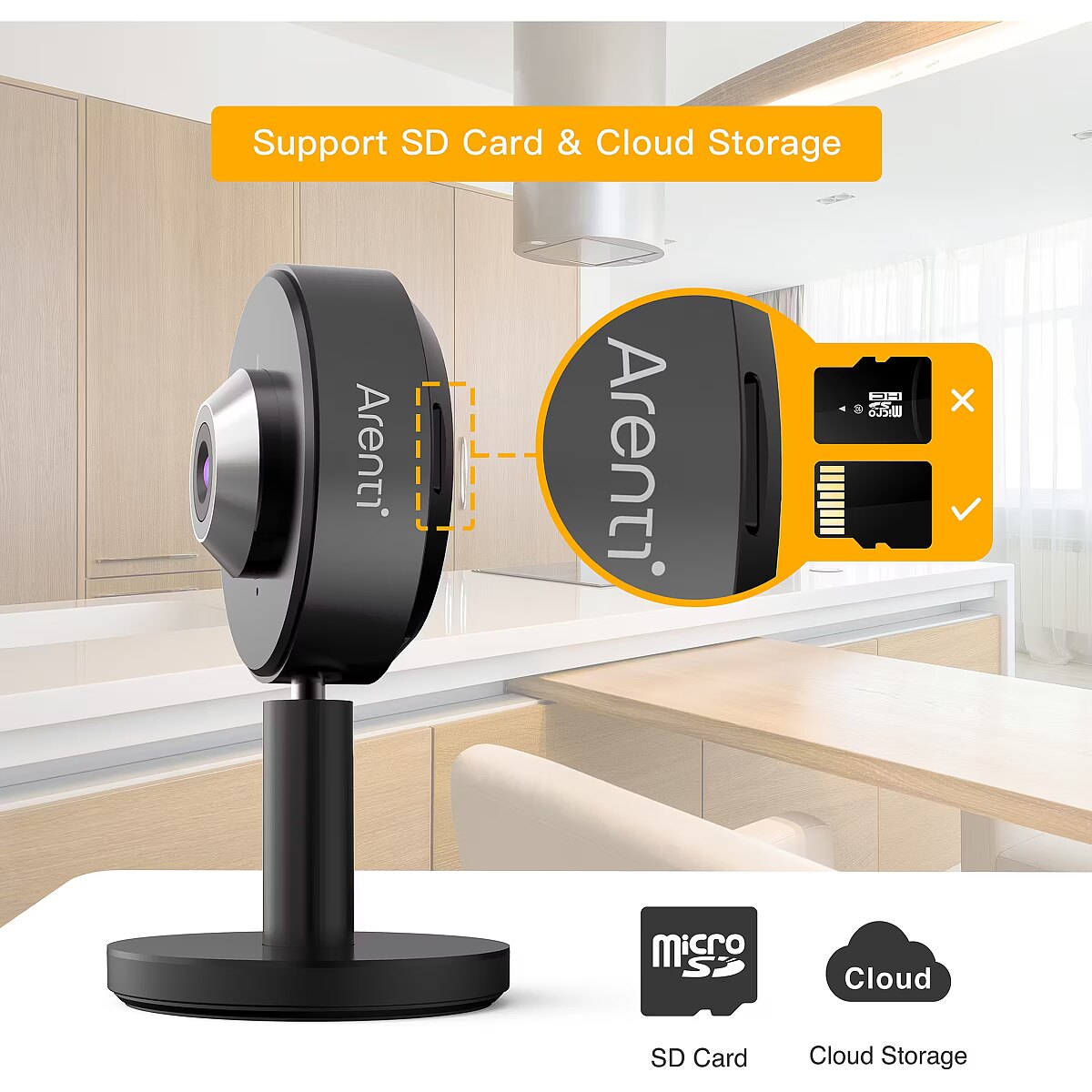 Enjoy 3-month free trial of Cloud storage based on the AWS encrypted server at no extra cost. Arenti INDOOR1 can automatically record an event video clip when motion or sound is detected and upload your video securely to the cloud for 72 hours, if cloud storage service is enabled. Besides the camera is compatible with FAT32 microSD cards up to 256GB.