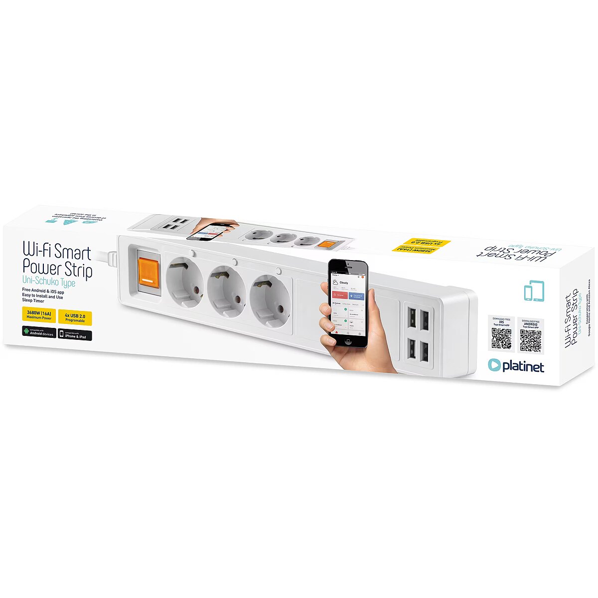 description_short_en - WiFi smart extension cord 3 × Uni-Schuko and 4 × USB 2.0 sockets Turn your devices on/off via an app Different types of timer options Compatible with both Android and iOS