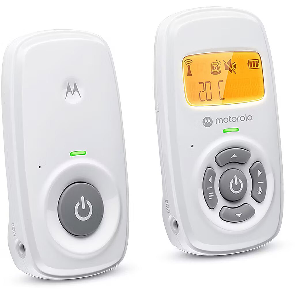 Name - Motorola | Audio Baby Monitor | AM24 | 1.5” LCD black and white display with orange backlight; 1.5” LCD black and white display with orange backlight; Connect one baby unit to two parent units to monitor from different rooms; Rechargeable portable parent unit with 10 hours playtime; Two-way talk with high-sensitivity microphone; Room temperature monitoring | White