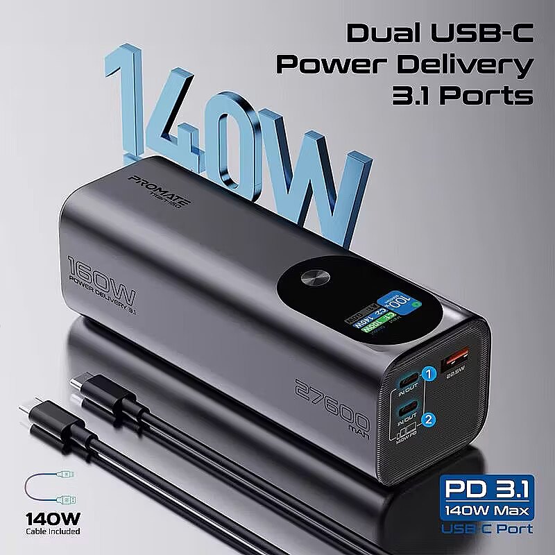 Promate Titan-160 Power Bank 160W / 27600mAh / USB-C PD / QC3.0
