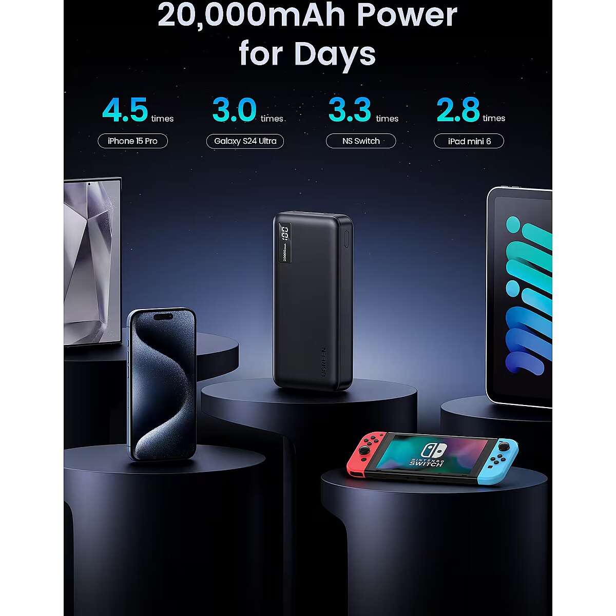 LongProductName - UGREEN Nexode 20000mAh Power Bank Fast Charging, PD 20W & QC 22.5W 3-Port Mobile Phone Portable Charger, USB C Battery Pack Compatible with iPhone 16/15, Galaxy S24/S23, iPad Pro, AirPods, etc