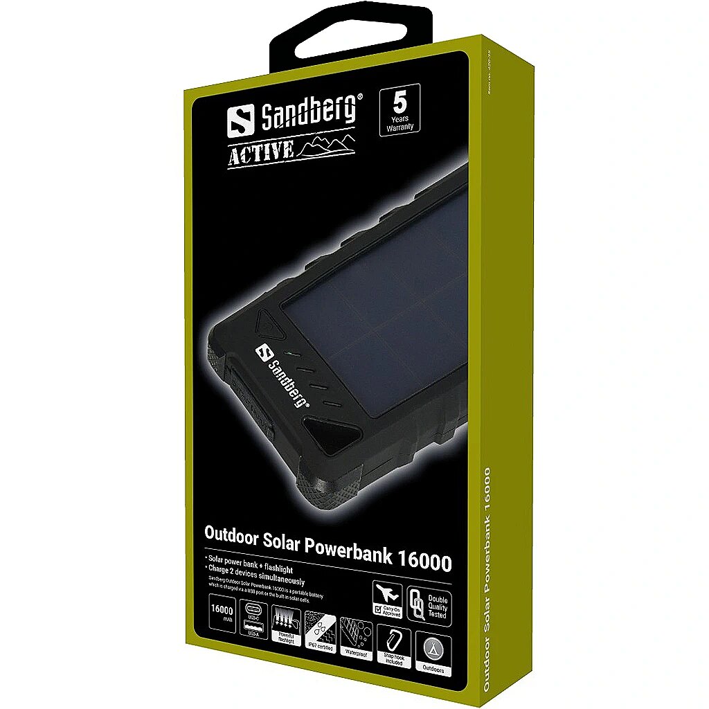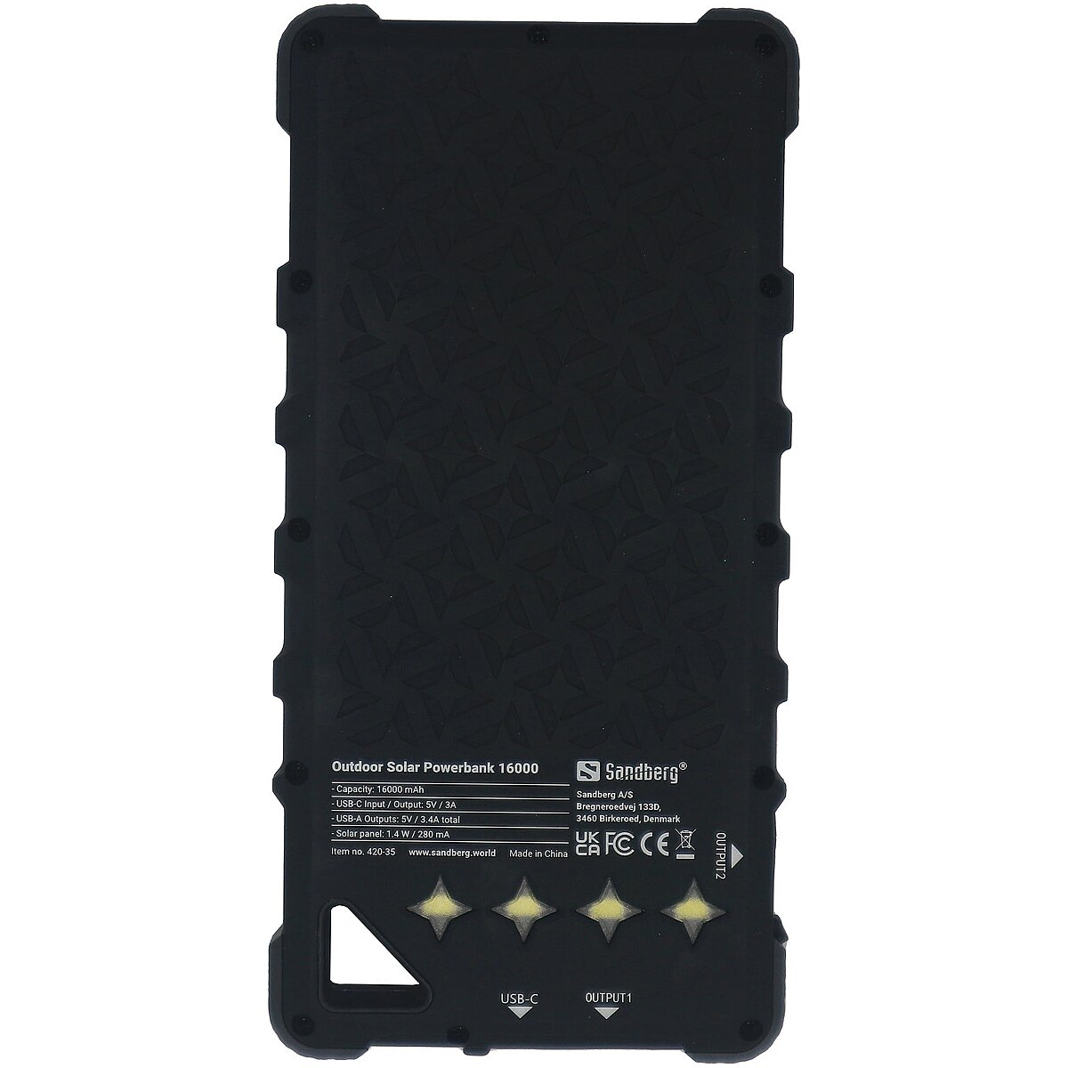 ShortSummaryDescription - Sandberg Outdoor Solar Powerbank 16000, 16000 mAh, Lithium-Ion (Li-Ion), Black