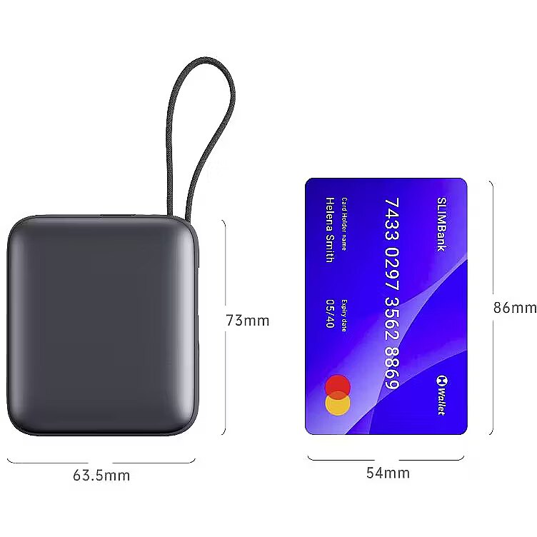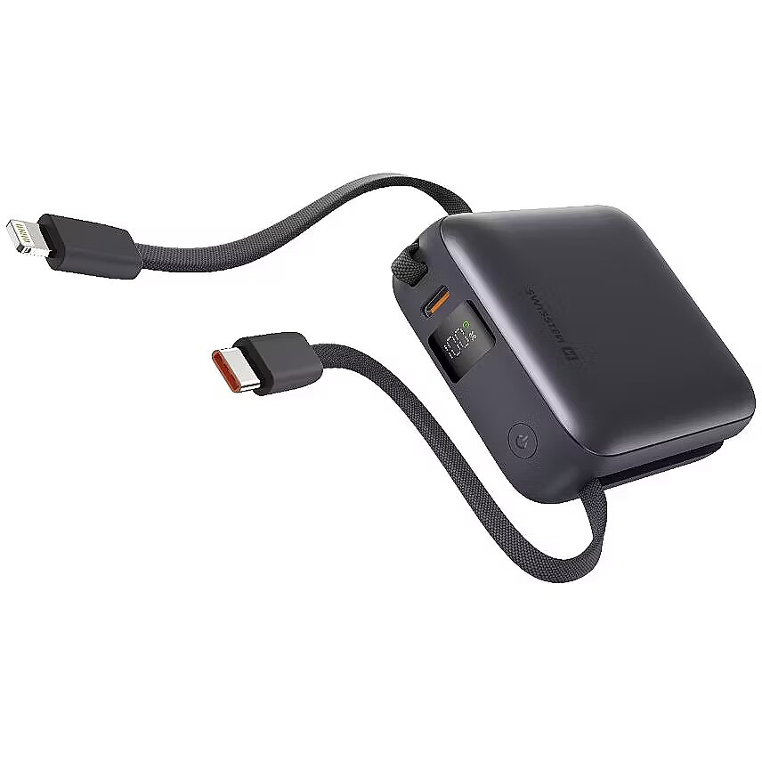 Despite its small size, this power bank delivers up to 22.5W of output power via the USB-C port and cable, ensuring fast and reliable charging for smartphones, tablets, and other devices. The integrated Lightning cable provides up to 12W, ideal for quick charging of iPhones and other Apple products. Sleek Design and Durability