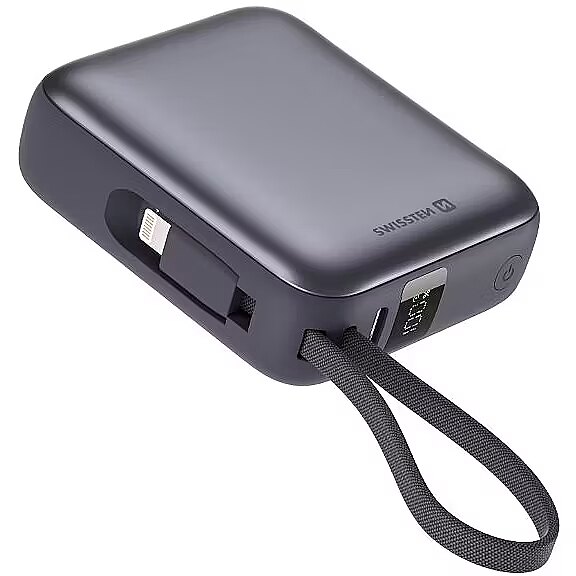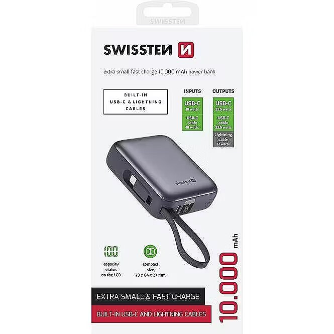 title_en - Swissten Power Bank 10000 mAh with Built-In Cables USB-C and Lightning