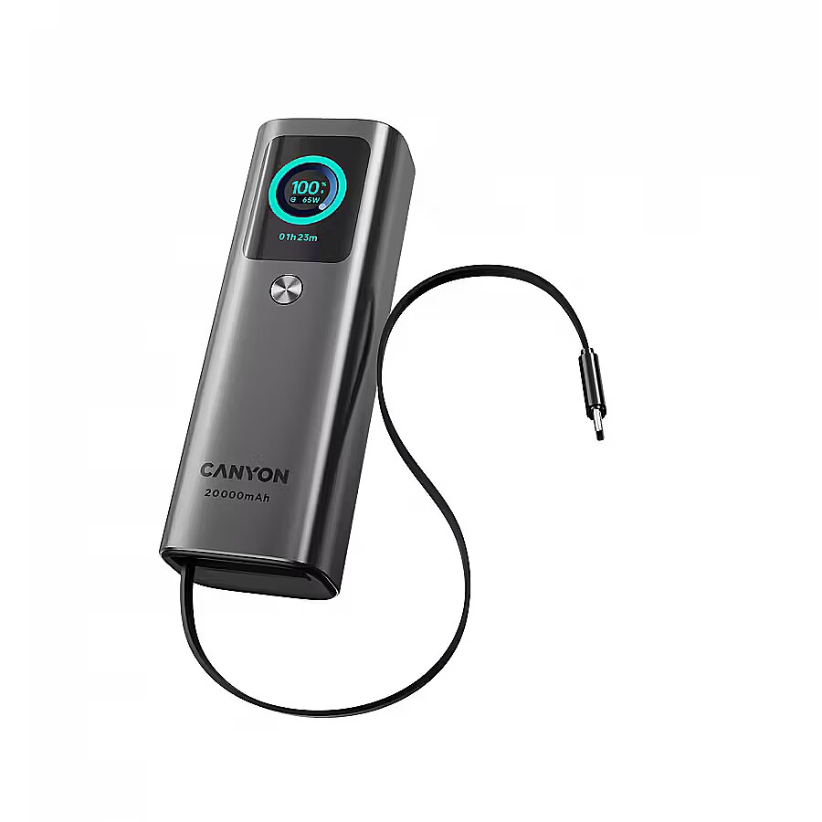 ProductDescription - CANYON Built-in cable power bank OnPower 265 20000mAh 165W Aluminium Dark grey