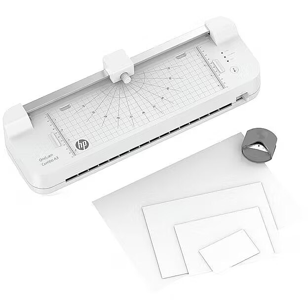 productName - HP ONELAM COMBO A3 laminator, Warm, integrated trimmer, corner rounder, 40 cm/min speed + 15 pouches: 3xA4, 4xA5, 4xA6, 4xB-CARD, White