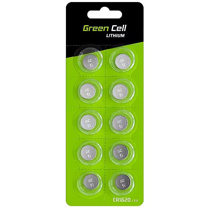 Description - Lithium Battery 10x CR1620 3V 70mAh Original CR1620 Green Cell Lithium battery with 70 mAh capacity and 3V voltage. Green Cell batteries, due to use of high quality materials, guarantee full safety of use, both for you and your devices. Lithium batteries are characterized by high durability, provide up to 3 years of operation at full capacity even in extreme temperatures from -30 to 60 Celsius degrees. Usage: scales, calculators, computers, glucometers, car remotes and other electronic devices. Modern Green Cell CR1620 Battery Green Cell CR1620 lithium batteries are characterized by a high, real capacity - 70 mAh, which provides three times longer battery life than in the case of alkaline batteries.