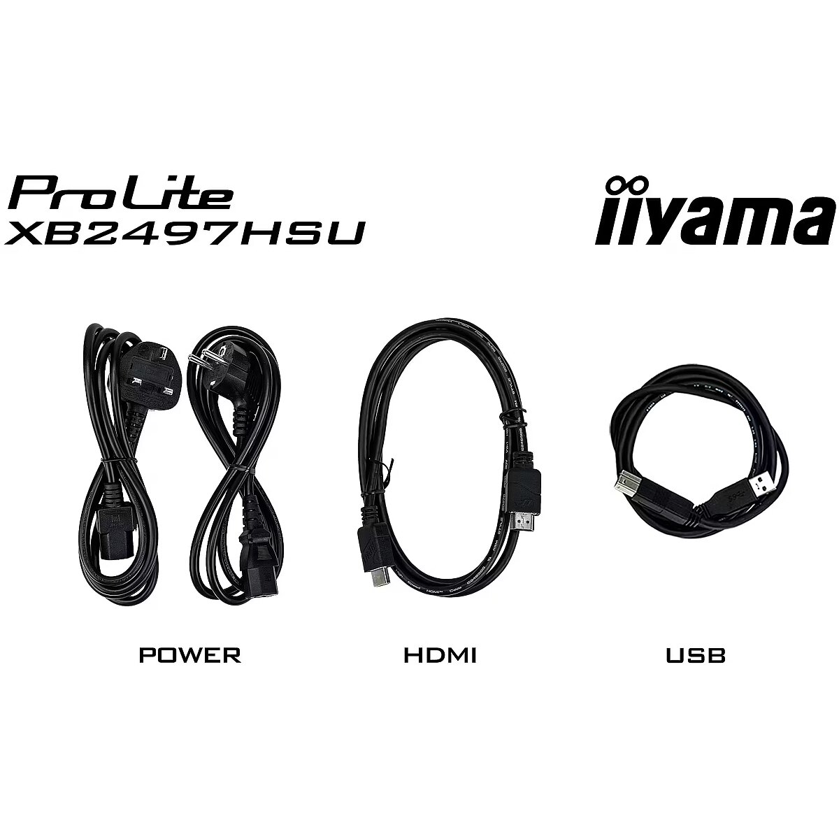 LongSummaryDescription - iiyama ProLite XB2497HSU-B1. Display diagonal: 60.5 cm (23.8"), Display resolution: 1920 x 1080 pixels, HD type: Full HD, Display technology: LED, Display surface: Matt, Response time: 4 ms, Native aspect ratio: 16:9, Viewing angle, horizontal: 178°, Viewing angle, vertical: 178°. Built-in speaker(s). Built-in USB hub, USB hub version: 3.2 Gen 1 (3.1 Gen 1). VESA mounting, Height adjustment. Product colour: Black