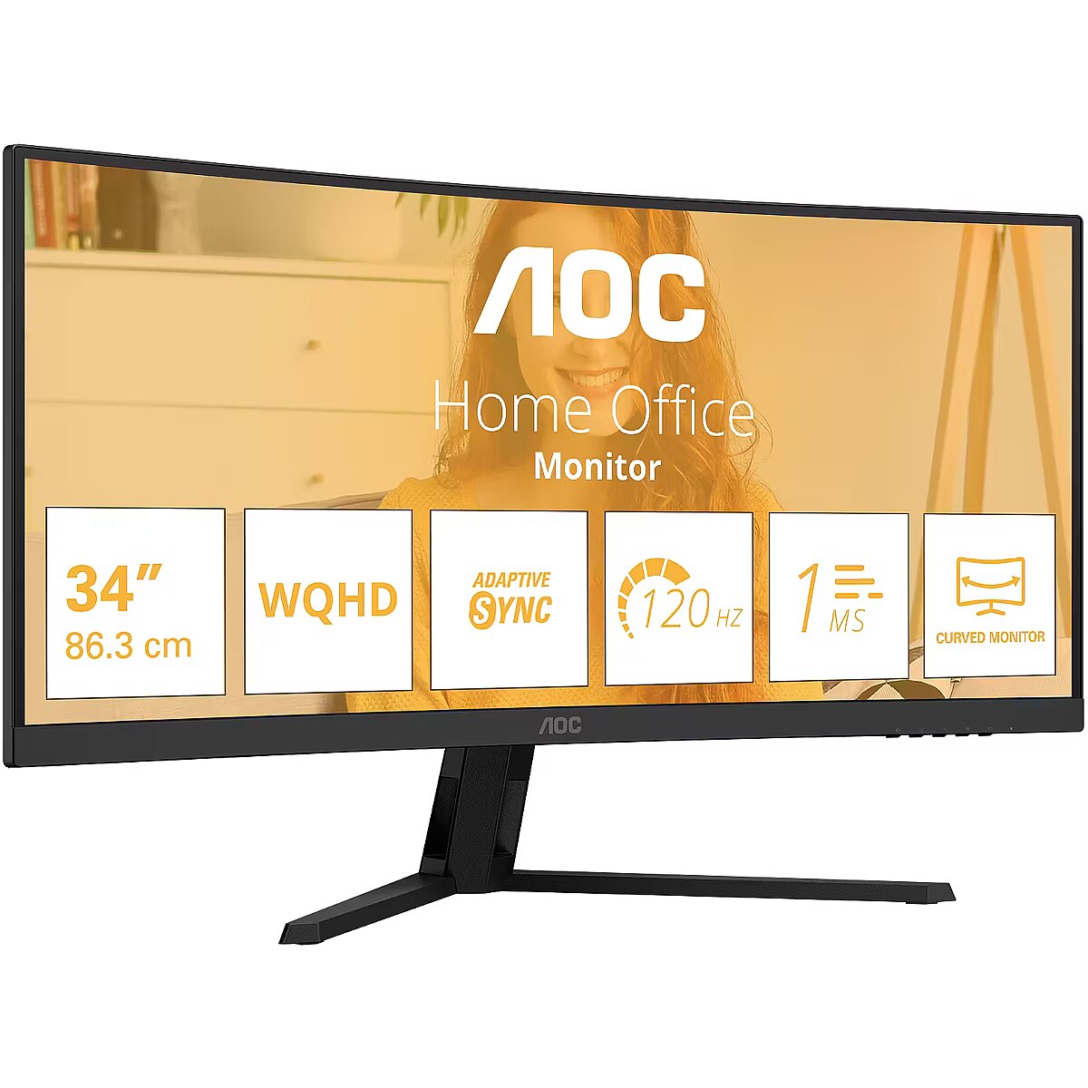 LongDesc - Immersive ultrawide clarity with fluid performance and curved comfortThe CU34B3E elevates your workflow with its expansive 34" WQHD ultrawide display, offering exceptional clarity and a wider field of view for seamless multitasking. Its curved design enhances visual comfort, drawing you deeper into your content. With a fast 120Hz refresh rate and 1ms response time, every motion appears smoother and more responsive—perfect for both productivity and entertainment. Adaptive Sync ensures a tear-free visual experience, making this monitor a versatile addition to any modern workspace.