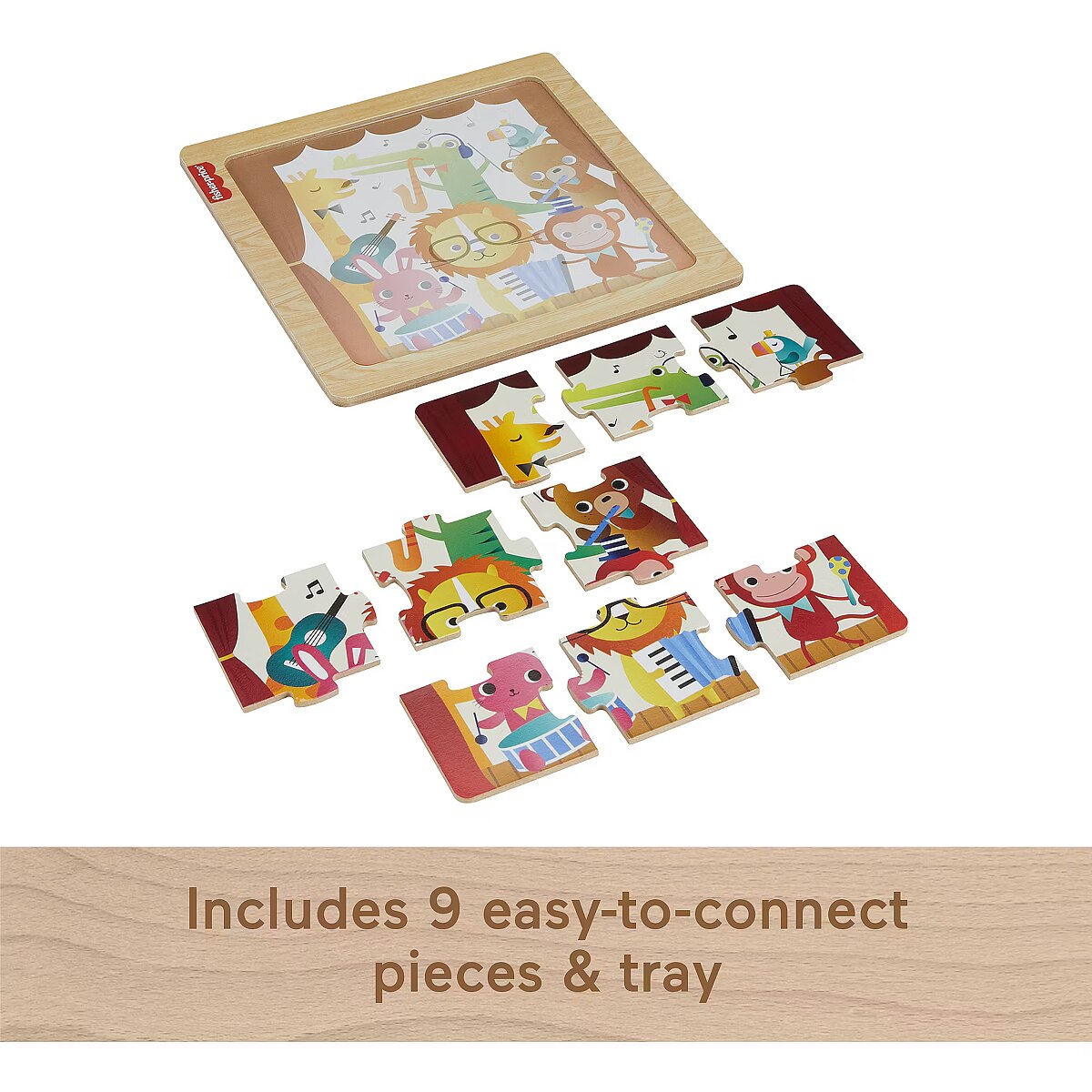 ShortSummaryDescription - Fisher-Price Wooden Jigsaw Puzzle Music Theme for Toddlers & Preschool Kids, 9 Wood Pieces, 9 pc(s), Animals, 2 yr(s)
