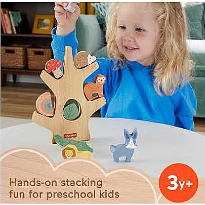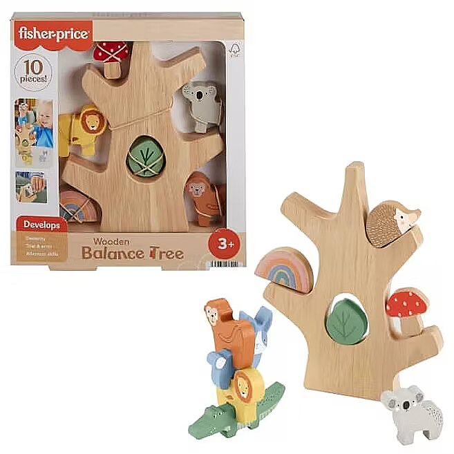 LongDesc - Preschoolers can stack up the fun with the Wooden Balance Tree toy from Fisher-Price. This wooden playset features 9 fun blocks that kids can stack up on each other or balance on the branches of the tree! Made with wood from Forest Stewardship Council-certified sources (FSC-N004566), this balance tree is a great way for kids to show off their creativity and work on their fine motor skills! Colours and decorations may vary.