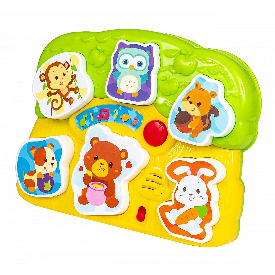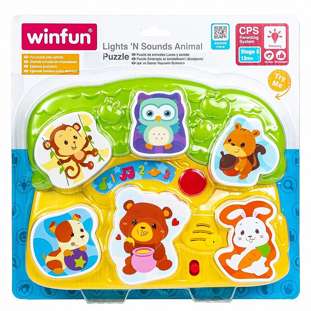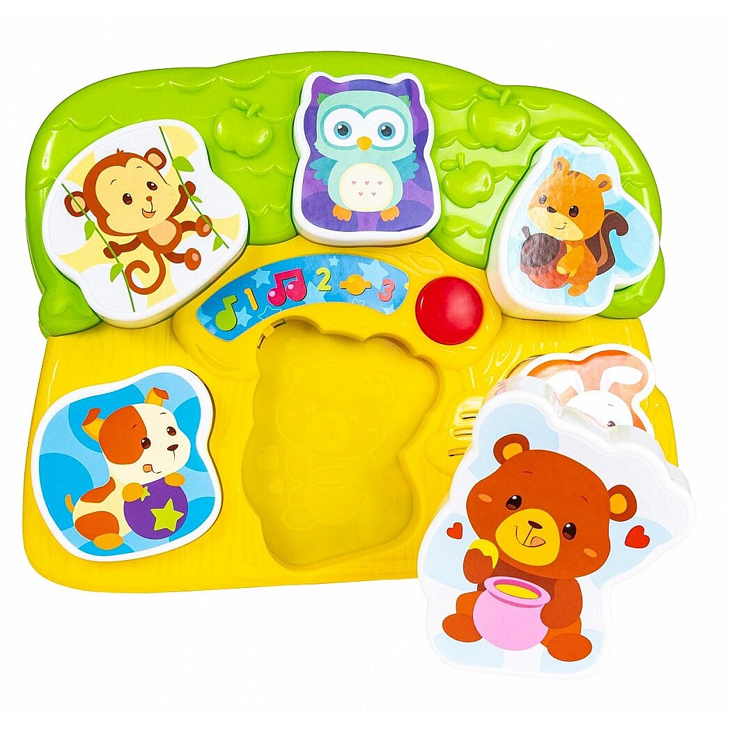 Arrange the puzzle correctly to hear the sound reward. Look at the flashing lights and listen to the merry melodies. The toy has a volume control. Comparing the shapes and the proper fit they practice the child's concentration. Elements are easy to grasp. Matching pictures and shapes develops visual-motor coordination and exercises the palms and hands.