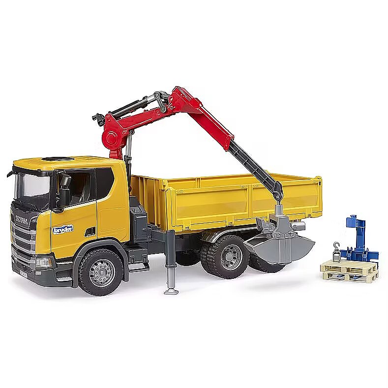 Bruder Scania Super 560R Baustellen-LKW mit Kran und 2 Paletten