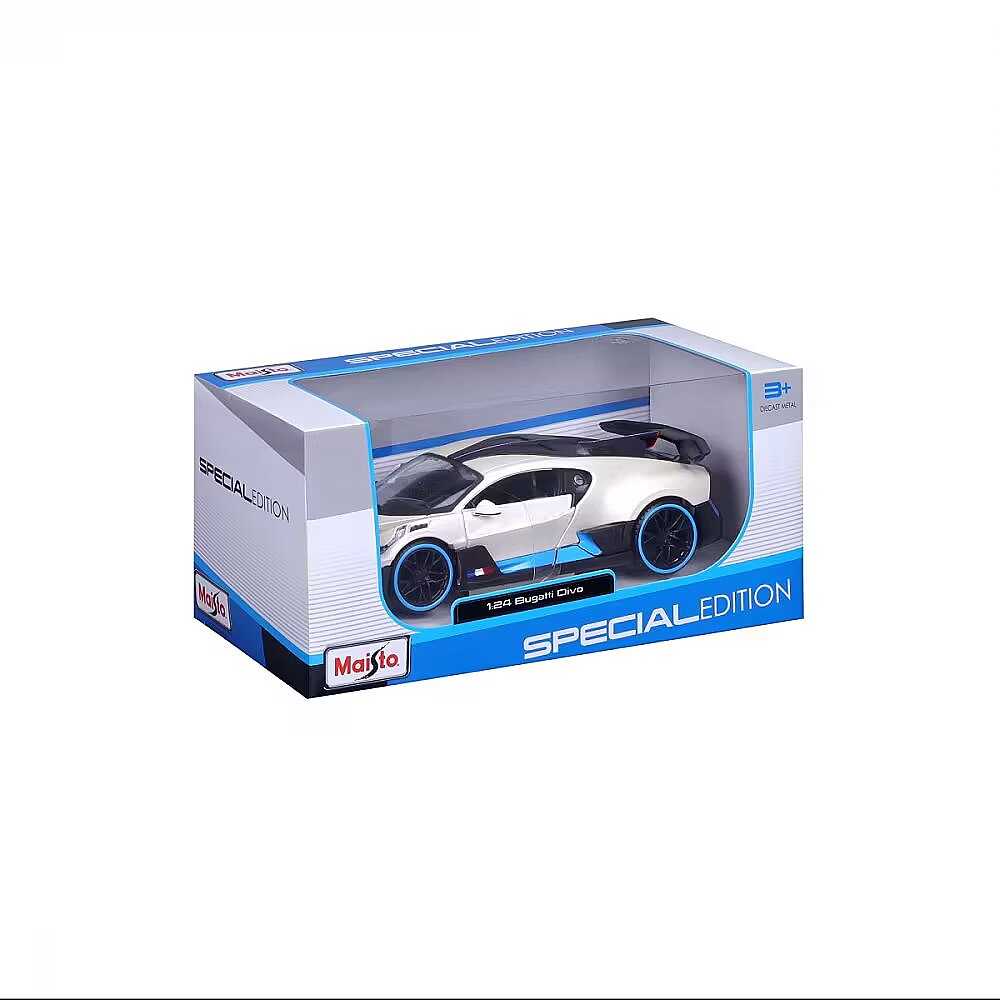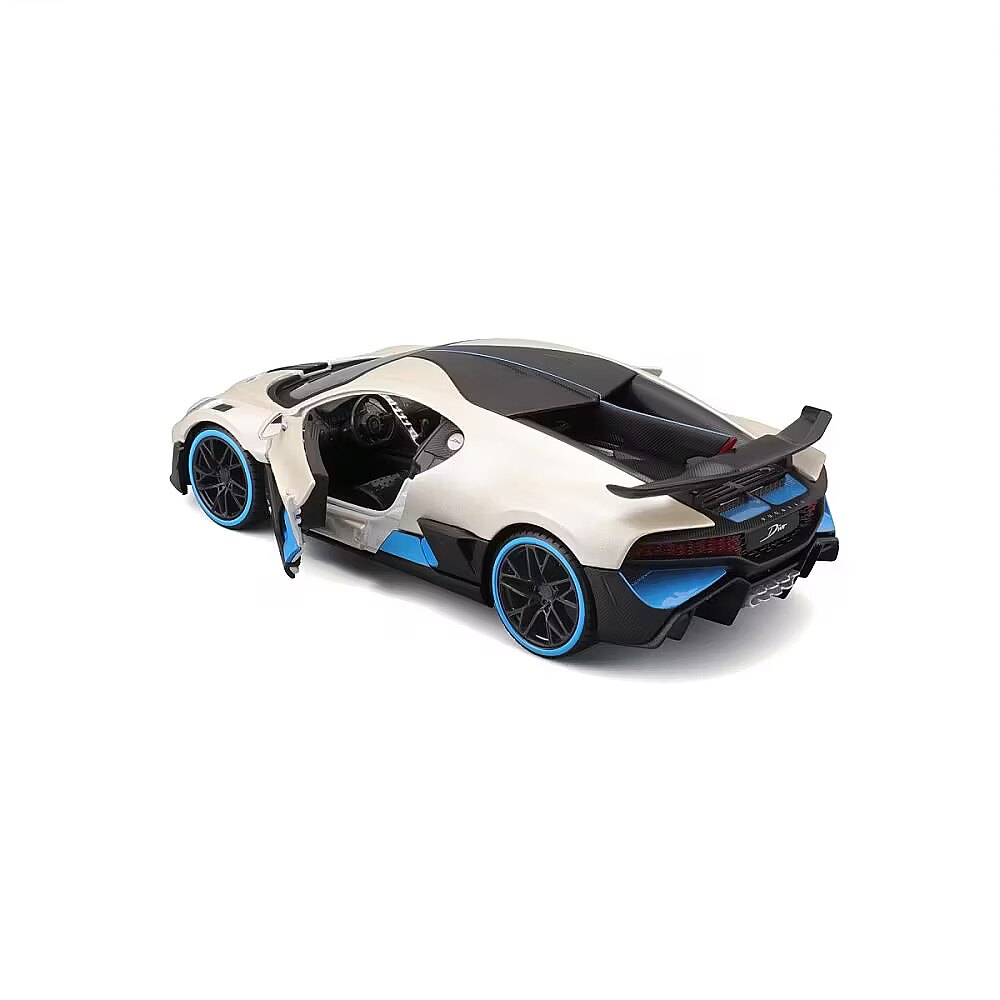 Description - Composite model Bugatti Divo 1/24 white Model in 1:24 scale. Metal body and plastic parts. Features moving parts and attention to detail. It has opening doors. It will fulfil its role both on a collector's shelf or desk and as a child's toy.