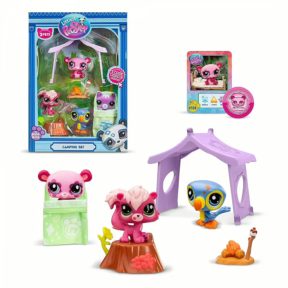 Przygotuj się na wyjątkową wyprawę campingową z Littlest Pet Shop Camping! Te zwierzaki uwielbiają świeżym powietrze i nie mogą się doczekać, aby odkrywać świat z tobą. Rozpocznij swoje campingowe przygody z 3 uroczymi zwierzakami, w tym #104 Panda, #105 Tukan i #106 Wiewiórka. Zanurz się w kreatywnej zabawie, gdy twoje malutkie zwierzaki pieką pianki przy maleńkim ognisku, odpoczywają na wygodnym pniu drzewa lub wtulają się w przytulny śpiwór. LPS Camping zawiera: 3 zwierzątka LPS 6 kolorowych akcesoriów Karta kolekcjonerska, aby odkryć wyjątkowość Twojego zwierzaka Wirtualny kod O LPS: Generacja 7 figurek Littlest Pets Shop ma już dwie serie. W serii 2 mamy 18 nowych zwierzątek z dużymi główkami. Panda, iguana, pies i wiele innych zwierzaków chętnie zostaną Twoimi nowymi przyjaciółmi! Karty kolekcjonerskie to więcej zabawy: Użyj karty kolekcjonerskiej, aby poznać każdego uroczego zwierzaka, jego wyjątkową osobowość, rasę i poziom rzadkości. Wirtualna zabawa: Dołącz do naszej wirtualnej zabawy! Za pomocą kodu, który znajdziesz na monecie, możesz odblokować wyjątkowe niespodzianki i wirtualne zwierzaki. Aby dowiedzieć się więcej, odwiedź naszą stronę littlestpetshop