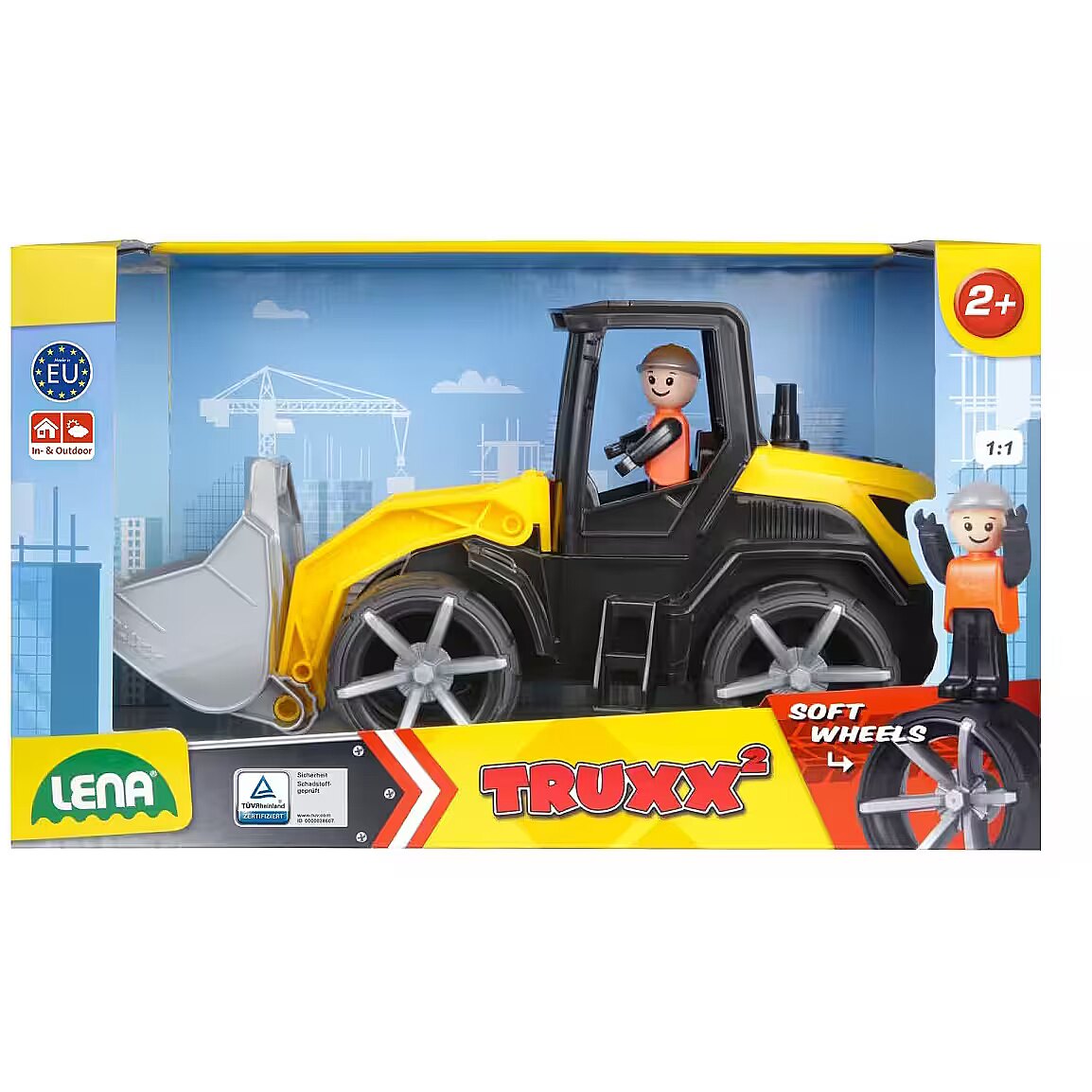 Description - Spychacz LENA TRUXX 2 Nadaje się do użycia wewnątrz i na zewnątrz. Odpowiedni dla dzieci powyżej 2 roku życia. Zapakowany w kolorowe pudełko ekspozycyjne. WYPRODUKOWANY W EUROPIE. Certyfikat TÜV. Miękkie, ciche opony 4 mm ocynkowane stalowe osie Otwierana kabina kierowcy Ruchoma łopata z uchwytem Figurka