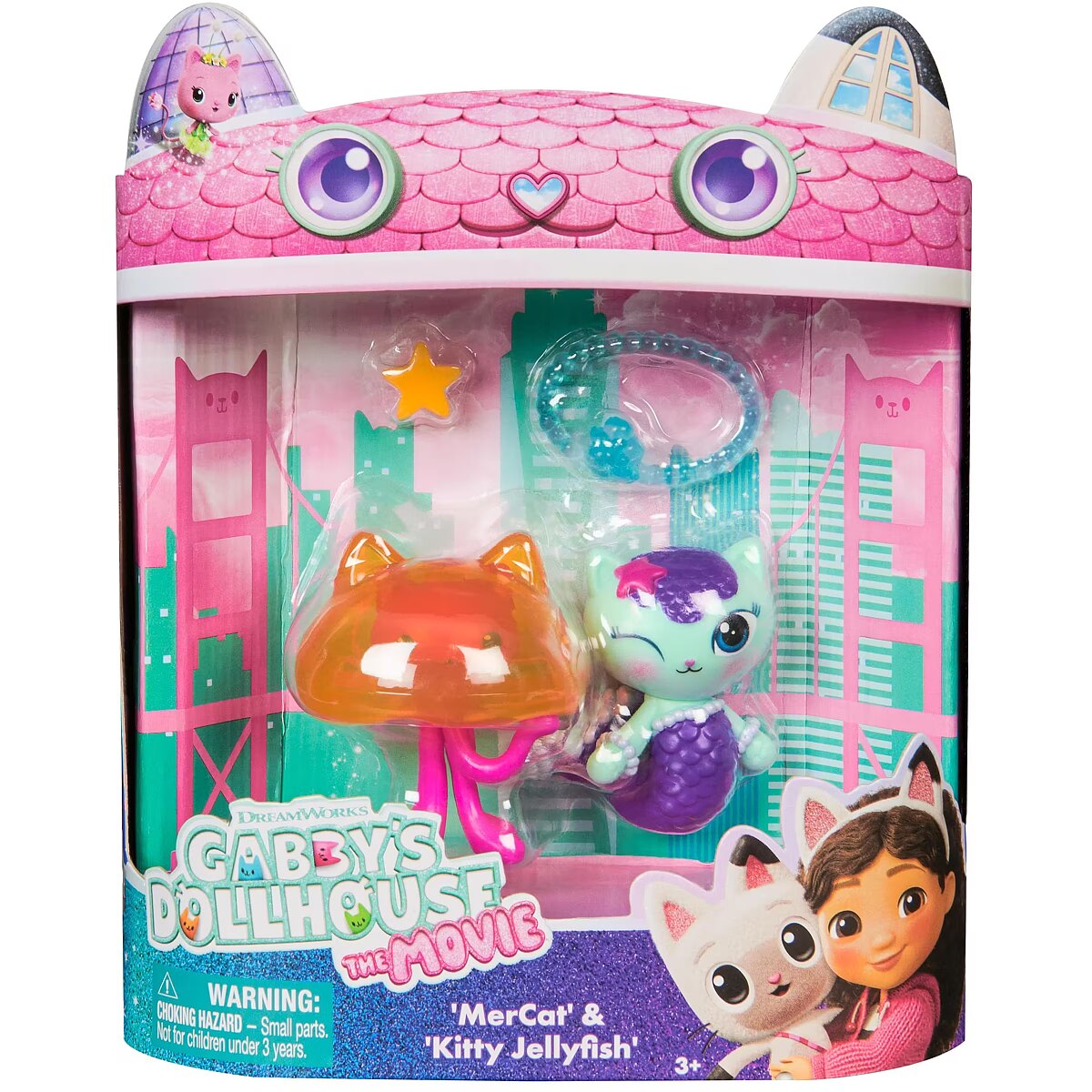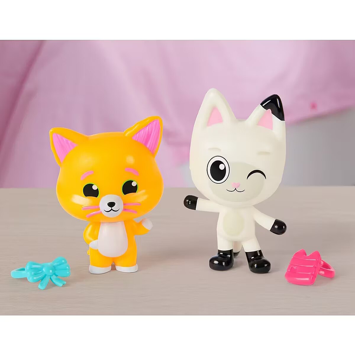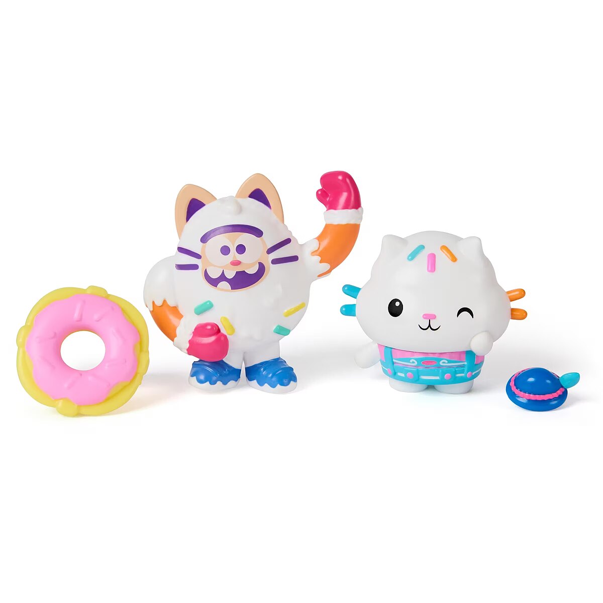 LongDesc - Enter the enchanting world of Gabby's Dollhouse: The Movie, with the Cakey Cat & Cookie Bobby movie figures set! Each figure stands over 2 inches tall and comes with delightful accessories, making it a cat-tastic pick for fun-filled adventures. Cakey sports his adorable gumdrop ear-hat, while Cookie Bobby is ready to float into fun with his donut life preserver, inviting meow-mazing explorations with these cat-terrific learning toys. This set is a fun-filled way to inspire pretend play and invites meow-mazing explorations, with these adorable Gabby cat toys for kids. Gabbys dollhouse toys are purrfect gifts for kids to relive cherished moments from the Gabby movie, and for creating new adventures in Gabby's dollhouse, with toddler toys for kids, like doll house accessories & furniture, her meow-mazing cat friends and fin-tastic mermaid toys, for endless hours of cat-terrific adventures (each sold separately)