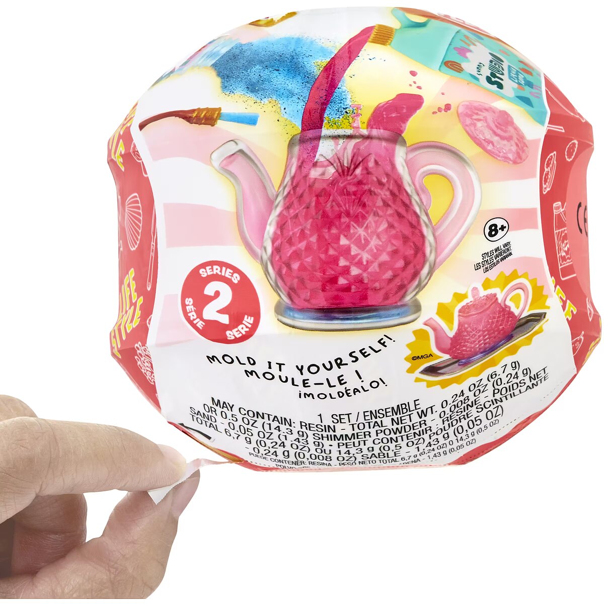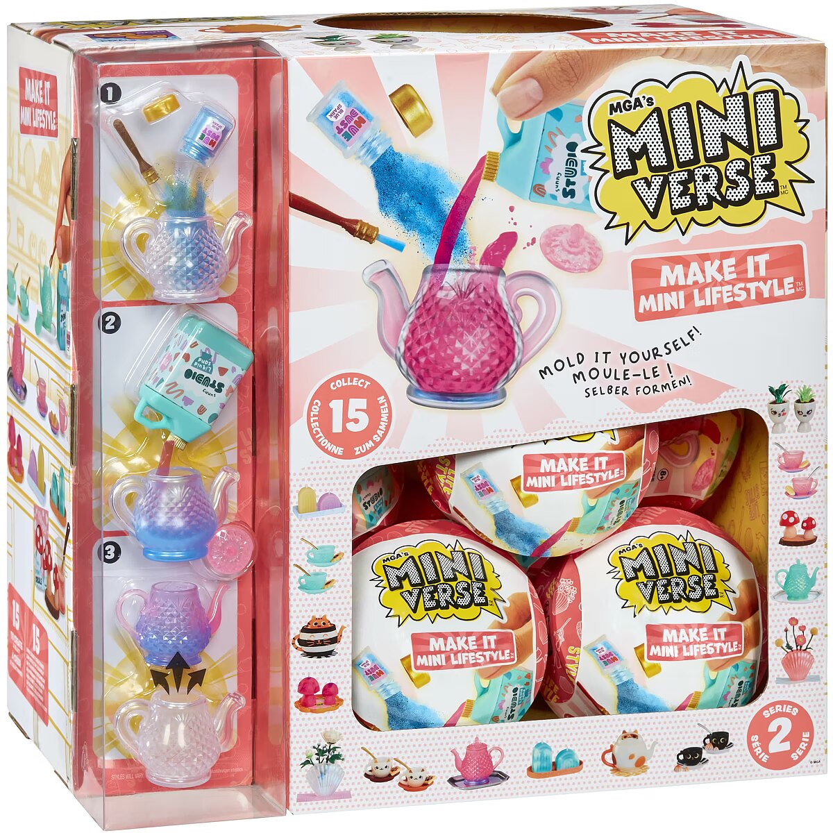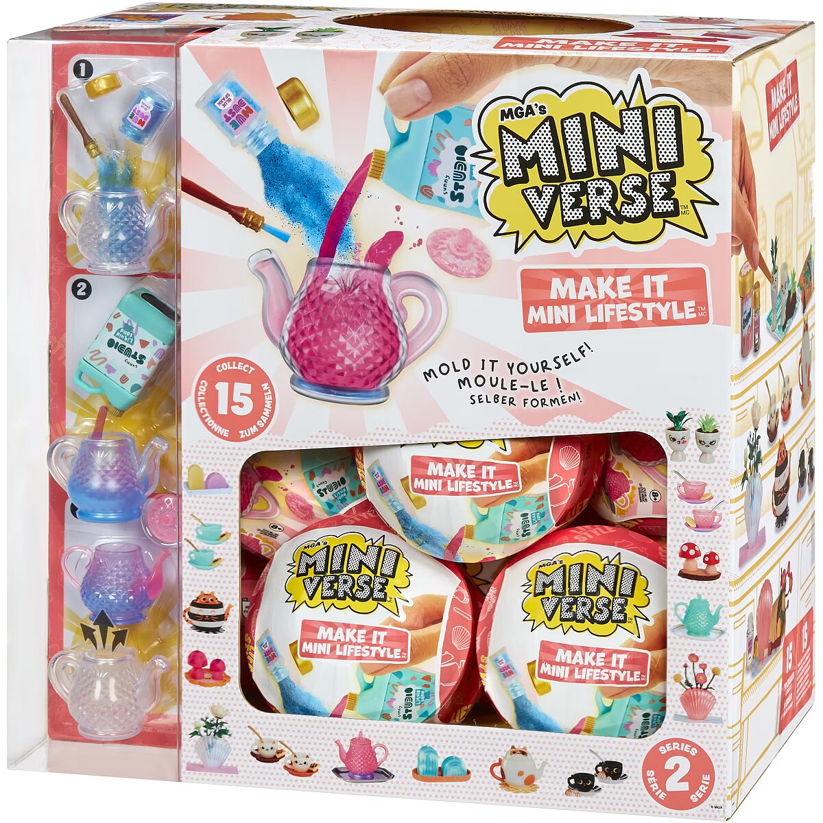 LongDesc - MGA's Miniverse™ is THE Lifestyle! Get ready for all-new DIY Make It Mini Lifestyle™ Series 2 items to mold, set, display, and collect! Each ball comes with realistic mini items to mold your own mini replicas of your favorite lifestyle and home decor pieces! From candles, to teacups, to teapots, each package is a SURPRISE so you won't know which mini you have until you unbox it! Compare the contents of your package with the included collector's guide to see which mini you have. Use the provided items and molds and follow the instructions on the back to make your mini. Once you've finished molding your mini, set your replica in any UV light (like the sun) until the resin has hardened. Once it's set, you've got a collectible ready for display!DISPLAY IT! Our MGA's Miniverse™ lifestyle capsules double as display cases for your minis. Simply place your mini on the capsule's shelf and admire your collection!Collect all the Make It Mini Lifestyle™ Series 2 minis! Visit the MGA's Miniverse™ Store to shop and learn more about all the MAKE IT MINI™ creations you can collect!DISCLAIMER: ALL Ingredients are NOT edible and do include resin play. Not suitable for kids under 8 years of age.