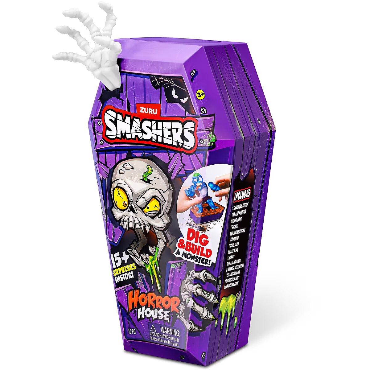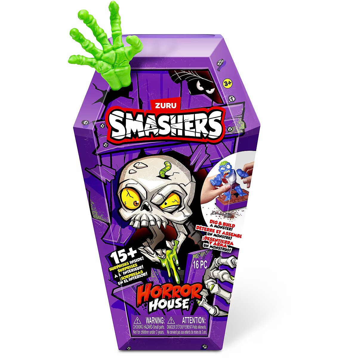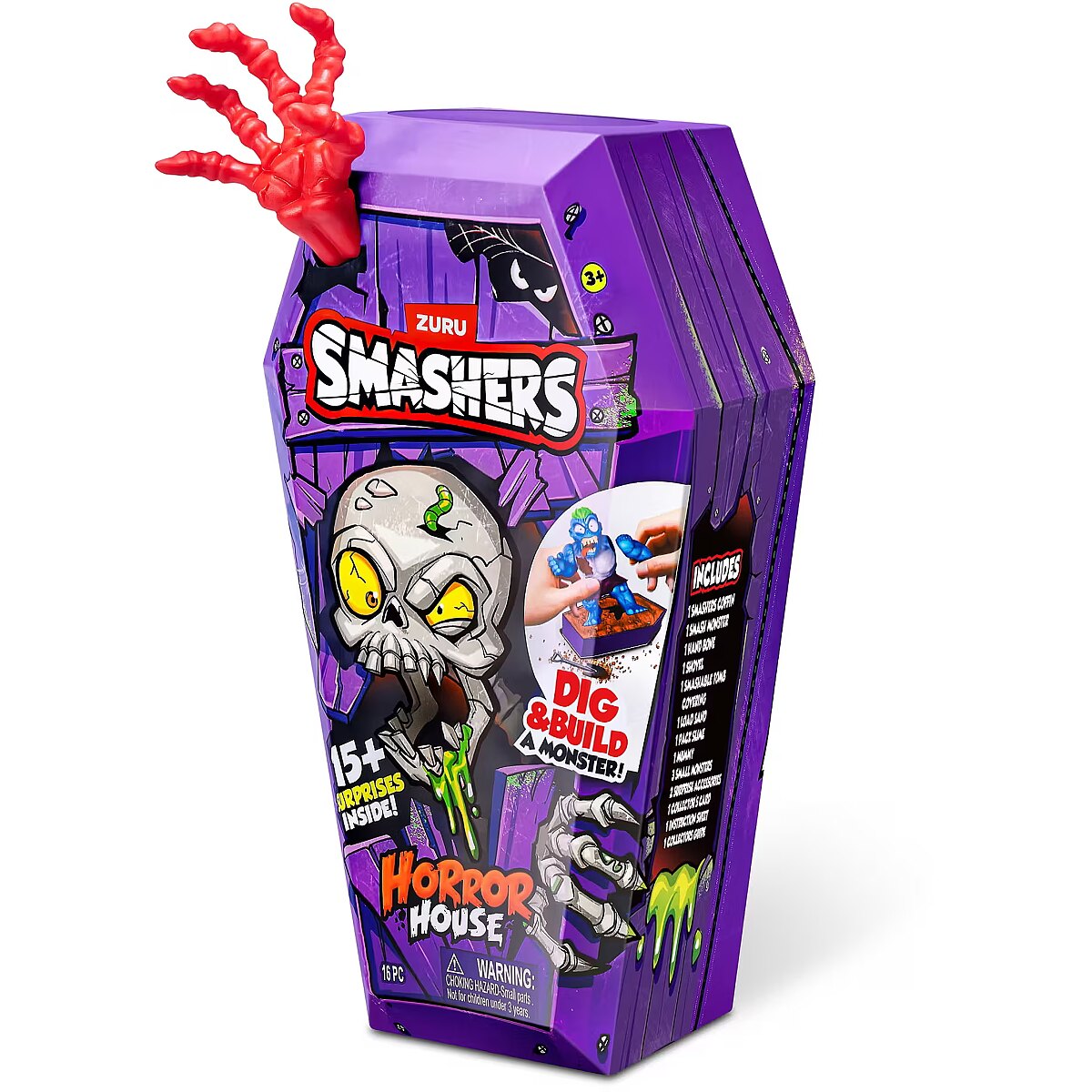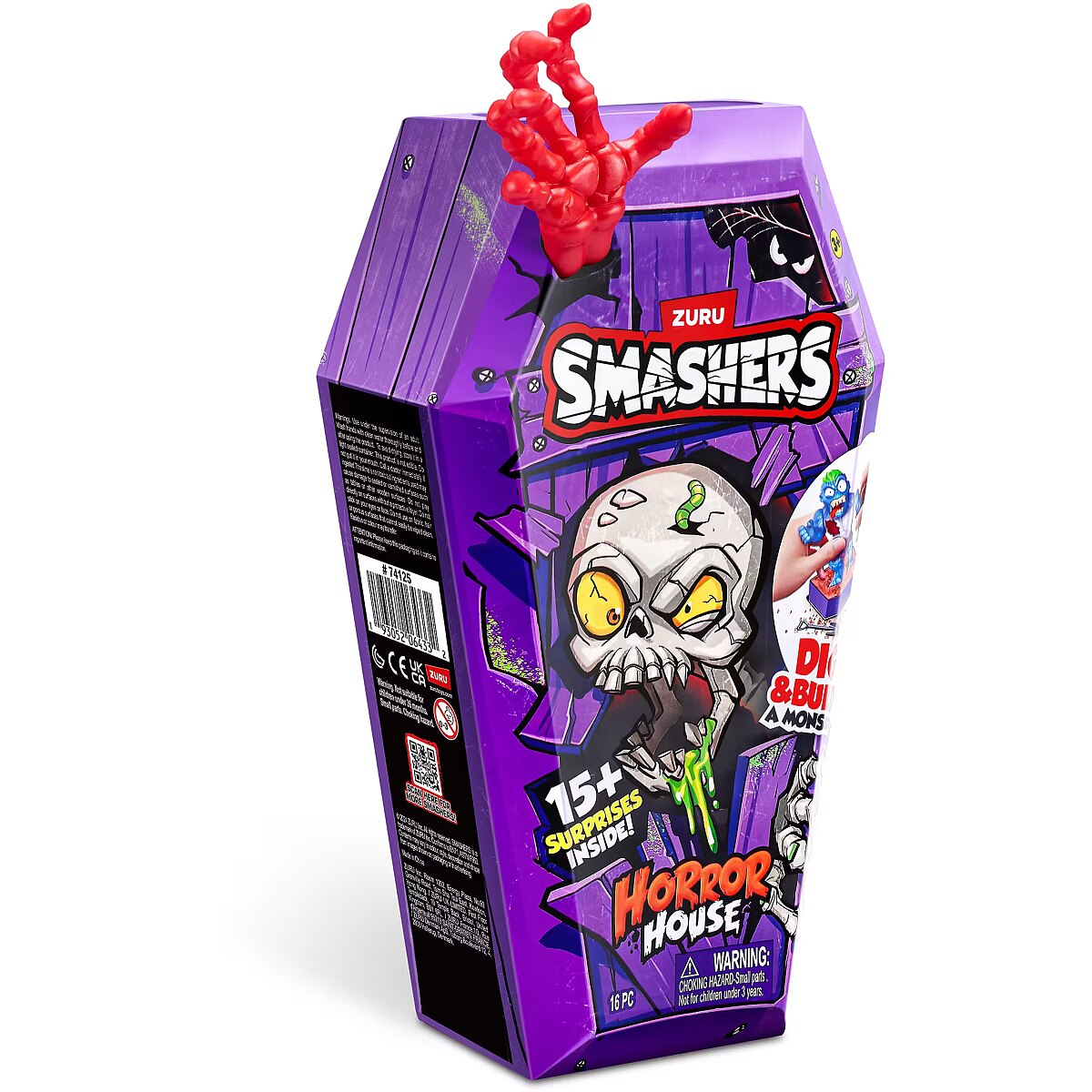 LongDesc - Smashers Horror House Series 1 ZURUSmashers Horror house takes you on a spooky quest. Smash, dig, and dissect, to bring your monster to life. With 15+ surprises inside, are you brave enough to open up the coffin and unearth a monster! Build and battle your monsters as you collect them all!