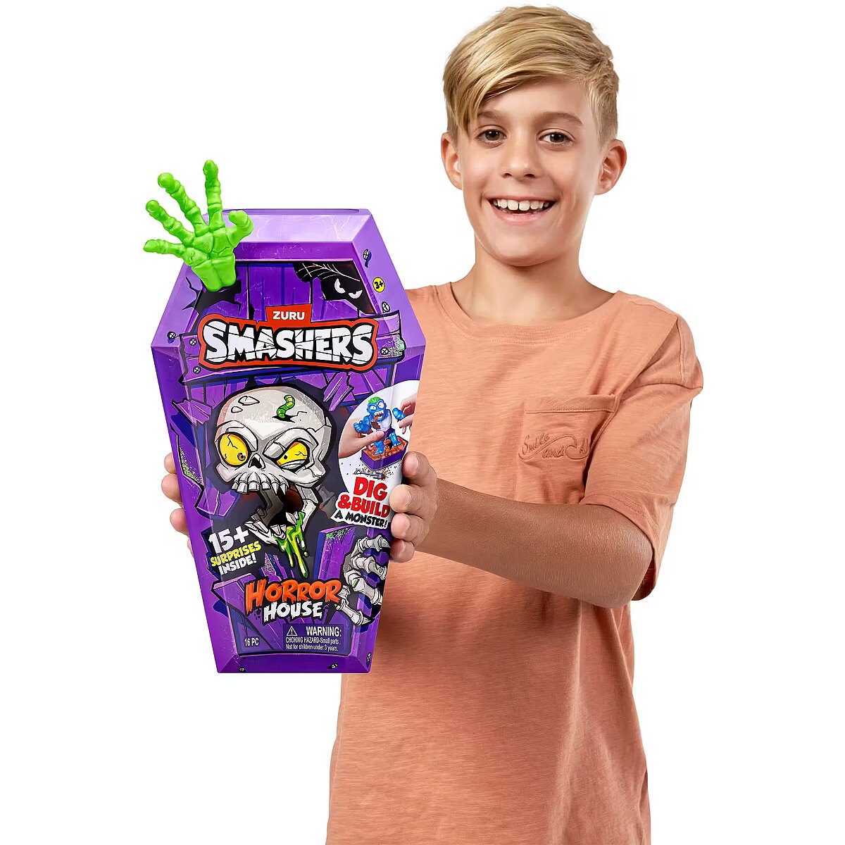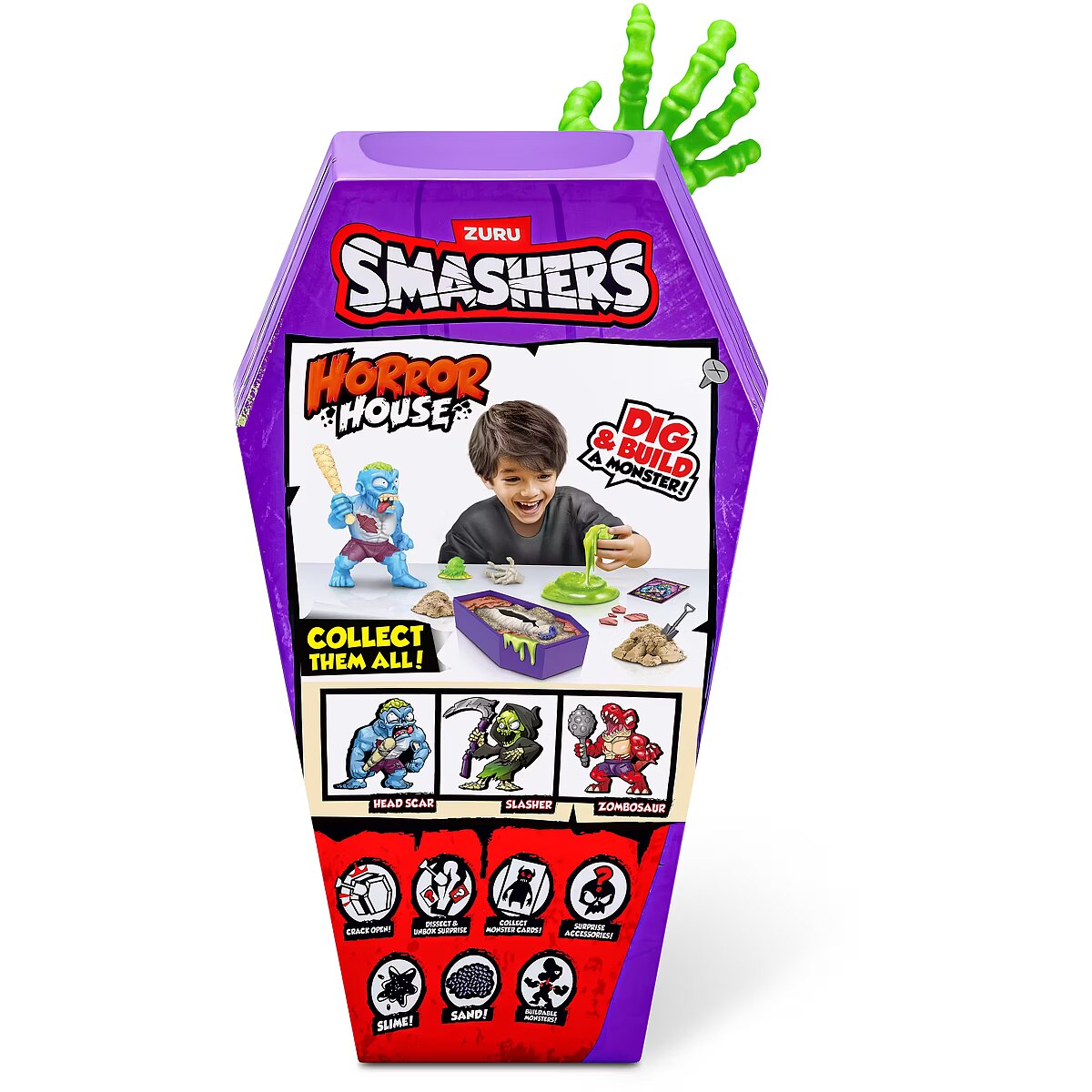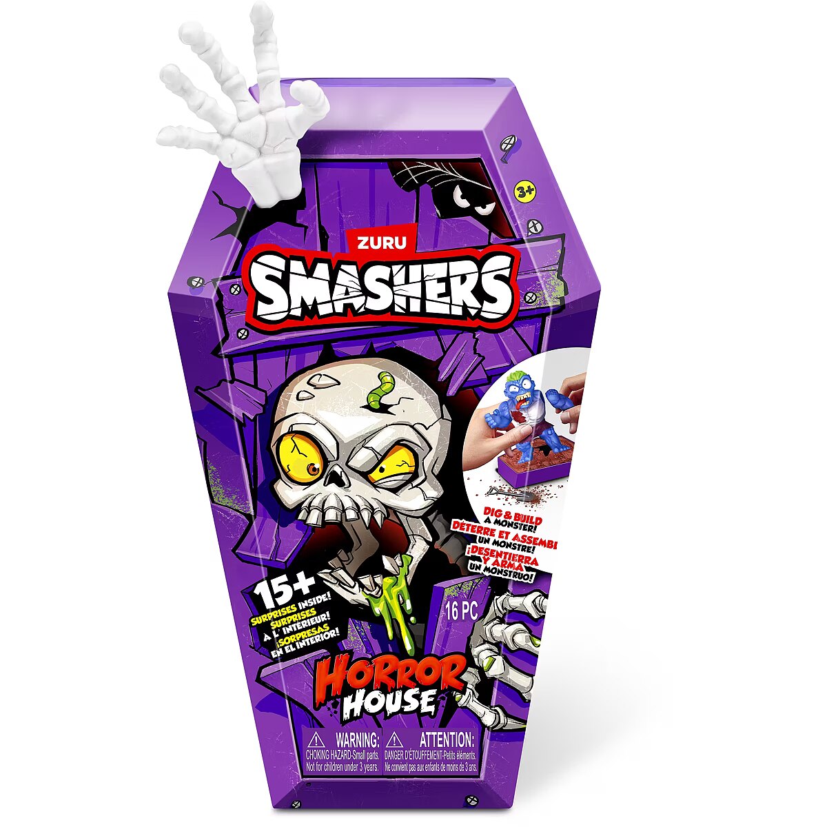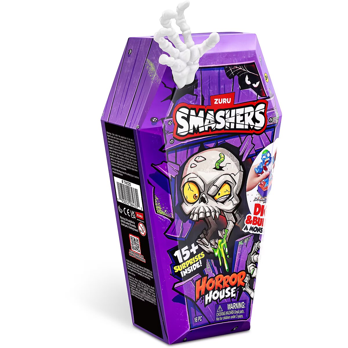 LongDesc - Smashers Horror House Series 1 ZURUSmashers Horror house takes you on a spooky quest. Smash, dig, and dissect, to bring your monster to life. With 15+ surprises inside, are you brave enough to open up the coffin and unearth a monster! Build and battle your monsters as you collect them all!